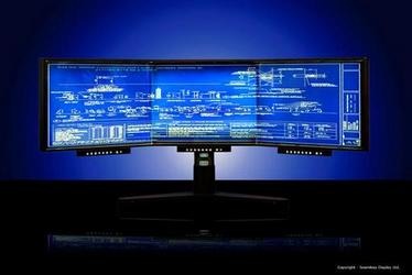 The Radius320 combines three 20.1" LCD panels into one continuous display system of 50-inch diagonal. The panels wrap around the user, which definitely makes for great ergonomics and an intense gaming setup. It supports Windows, Macintosh, and Linux operating systems, but requires enough video cards to support 3 DVI outputs at 1600x1200 resolution. Displays 11.7 million colors. Will be available in early 2007. Can register at the site to order.Radius320 3-in-1 LCD Display [Via: Gadgetell]