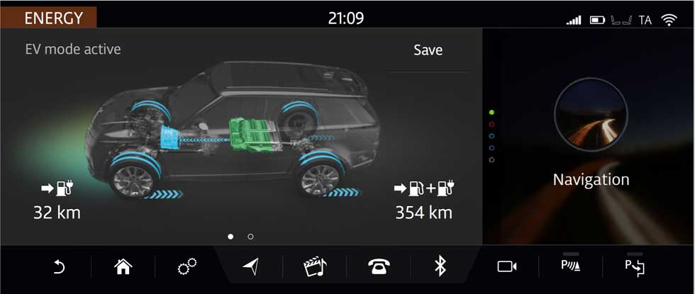 Despite the power and torque output, the vehicle was able to achieve 101 mpg on the combined NEDC fuel economy standards. The PHEV Rover Sport can travel for 31 miles on electricity alone. The battery pack can be recharged in 2 hours and 45 minutes from completely dead.