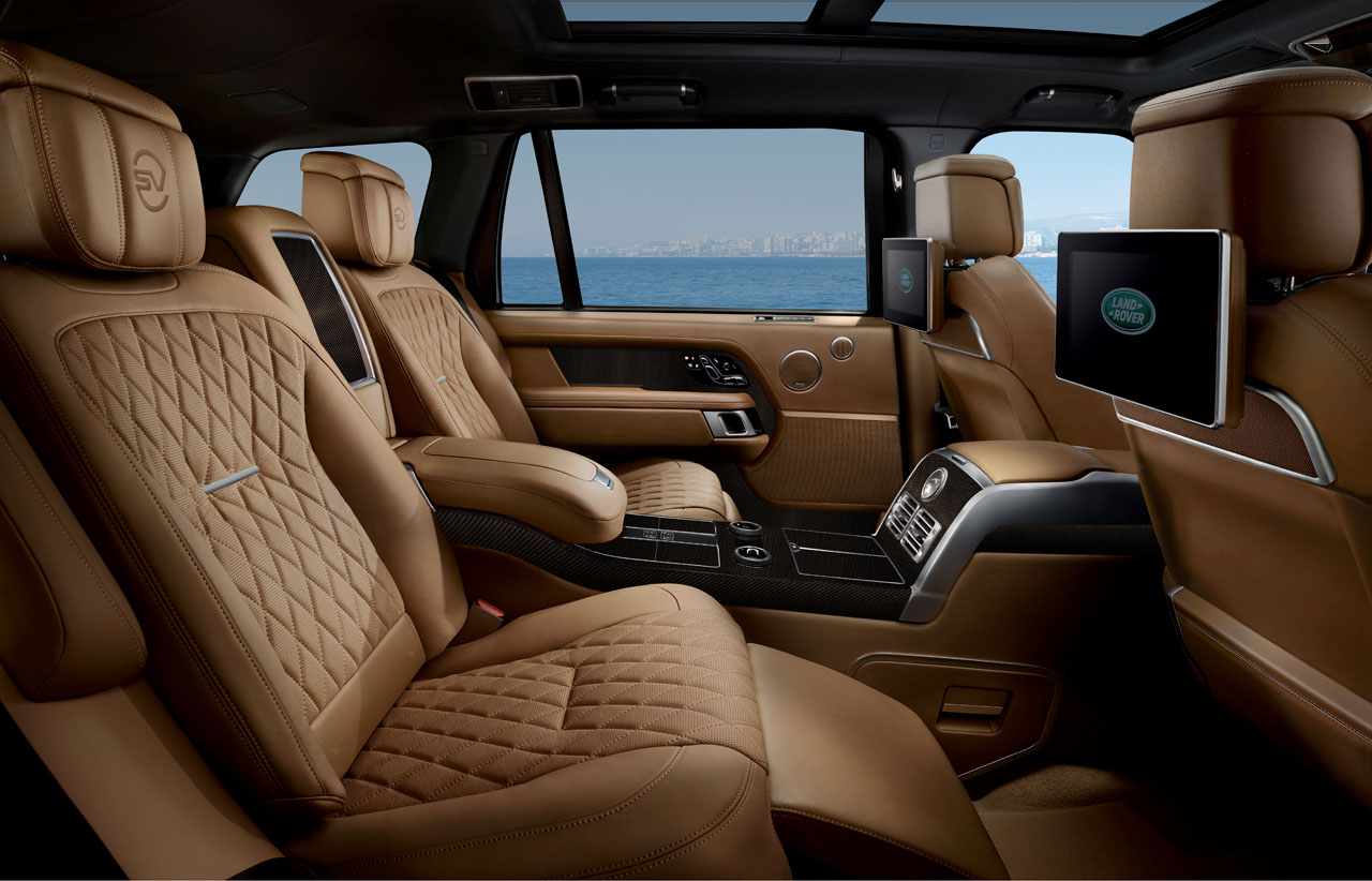 The long-wheelbase SVAutobiography promises first-class travel with power closing rear doors and reclining airline-style heated and cooled semi-aniline leather Executive Class Comfort-Plus rear seats. The vehicle has more than 1.2 meters of rear legroom, hot stone massage function, and calf and footrests for the rear occupants.