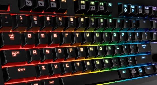 You can also set them to cycle all at the same time if they're connected to the same computer. They can do a wide variety of other odd color-based moves as well, of course. See our review of the Razer BlackWidow Chroma for more information on color cycling and keyboard quality.