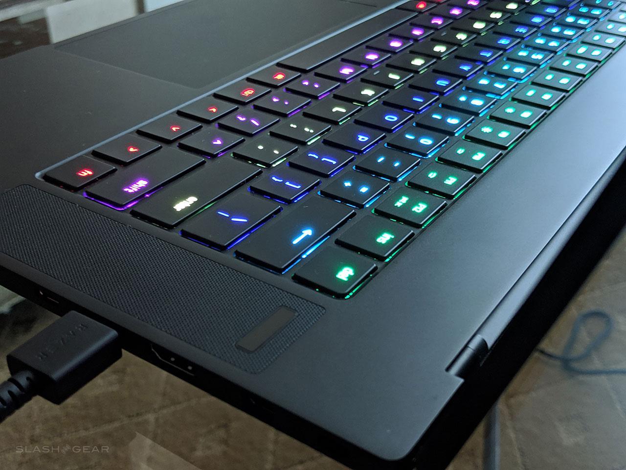 All models of this notebook have an anti-ghosting keyboard equipped with Razer Chroma backlighting – Razer Synapse 3 capabilities included. There's a pair of front-firing stereo speakers, a standard 3.5mm headphone/microphone combo port, and a bunch of other ports as well. There's a single Thunderbolt 3 USB-C port, 3x USB 3.1 Gen 1 (USB-A) ports, and a full-sized HDMI 2.0b port. There's a Mini Display Port 1.4 and a power port too (with compact 200 W/230 W power adapter).