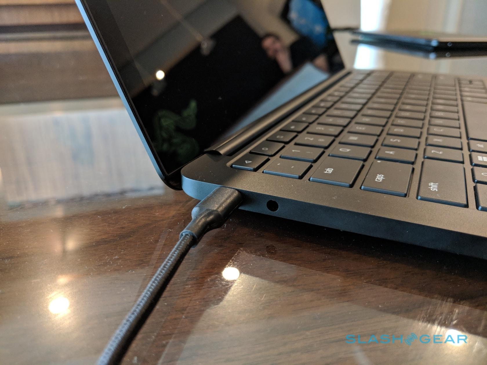 This notebook acts as an extension of the powers and features of the Razer Phone. It connects with the smartphone's USB-C port and allows the Razer Phone to connect to additional accessories, like a hub. This notebook has a 3.5-millimeter audio jack, a single USB-A port, a USB-C charging port, dual-array microphone, and a 720p webcam.