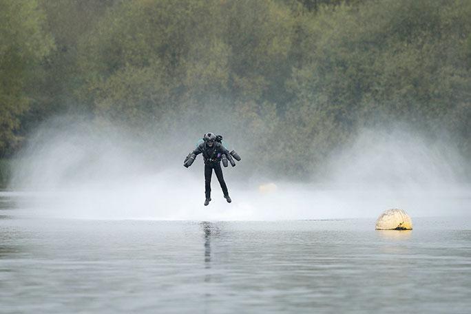 For the record-setting run, a Guinness World Records adjudicator, Pravin Patel, was on hand to certify the record and ensure that the speed as measured accurately over a 100-meter distance. The jet suit pilot set a record of 32.02 mph on his third and final attempt at the record. He then dropped into the lake.
