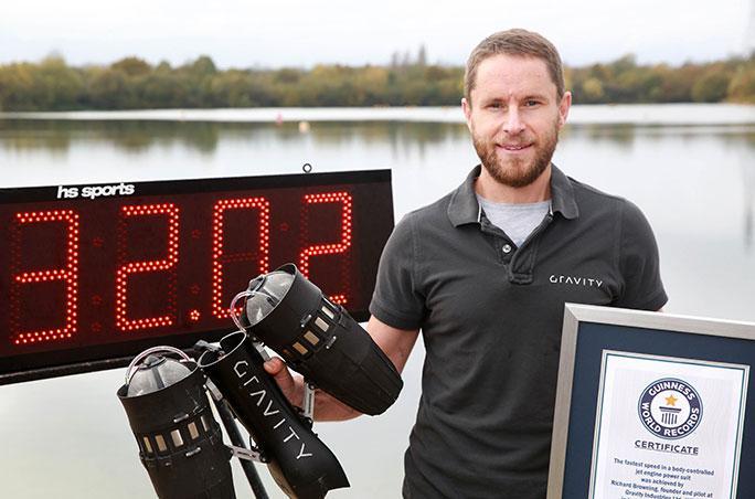The top speed reached isn't that fast, but considering how complex the control system looks the record and the flying suit are impressive indeed. If you are wondering about the Guinness World Records Day event, it is an annual thing.
