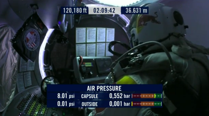 For those of you not already watching the live video feed of the Felix Baumgartner jump from space down to the planet in a Red Bull stunt for the record books, now's a good time to start – he's jumped! This jump had been cancelled earlier in the week due to weather conditions then postponed for the same reason, here working with conditions that allow the jump to go on optimally (so far) straight down from 120,000 feet / 36,576 meters above the ground. If all goes as planned, this mission will break more than one world record, and will be more than just a little bit of a good PR bit for the Red Bull brand.