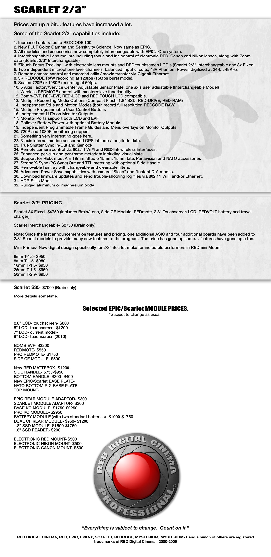 RED Scarlet 2/3 Camera Revealed Complete With Pricing