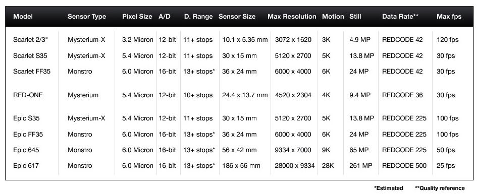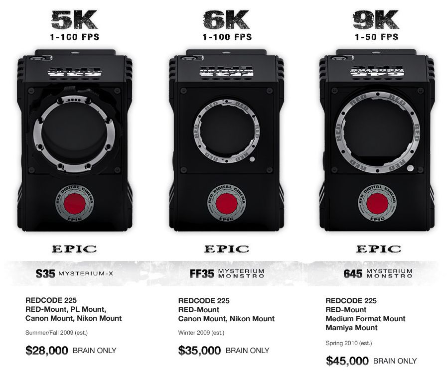 Jim Jannard of the company has described them both as "part of the same DSMC [Digital Still & Motion Camera] system", meaning Scarlet and EPIC are each capable of being configured to shoot stills and video depending on camera 'brain' and body configuration. Scarlet is available as four variants, from 3K up to 6K, while EPIC – described as the 'Master Professional' version – is available from 5K 1-100fps to 28K 1-25fps.