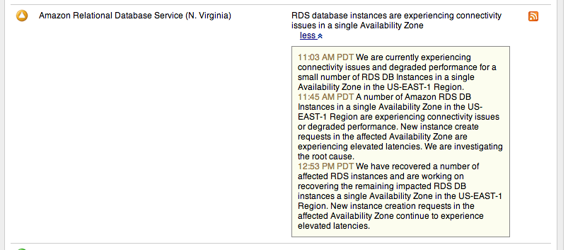 You can watch the updates yourself at Amazon's Web Services update page while you wait for the web giants to come back – meanwhile we'll be following along and updating you from SlashGear here as it happens as well. The current statuses surrounding North America, especially in the Eastern region of the states, let us know that Amazon is not only seeing outages in several areas, but that re-launching said services is currently a no-go.