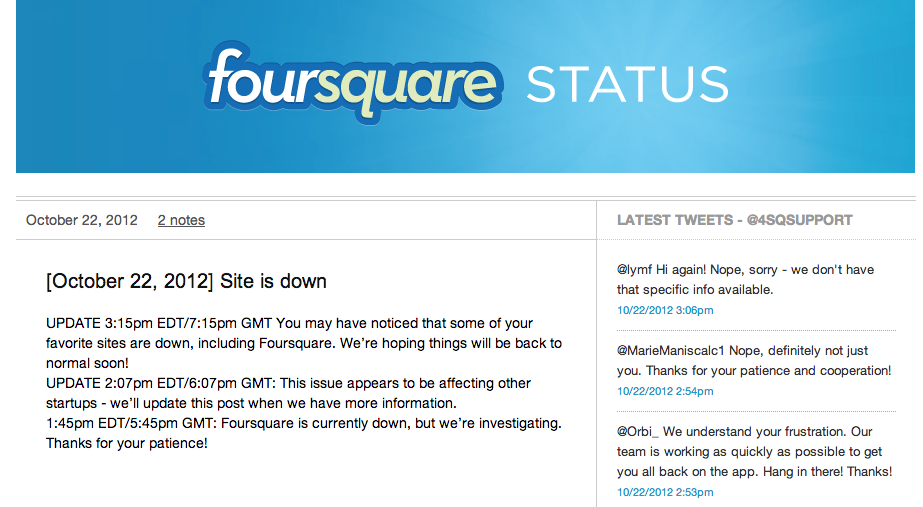 UPDATE: 3:10 PM CST – Affected sites list grows – Pinterest, FastCompany, FourSquare added. Failures appear sporadic as some sites appear to be up and running intermittently while others remain down for the count.