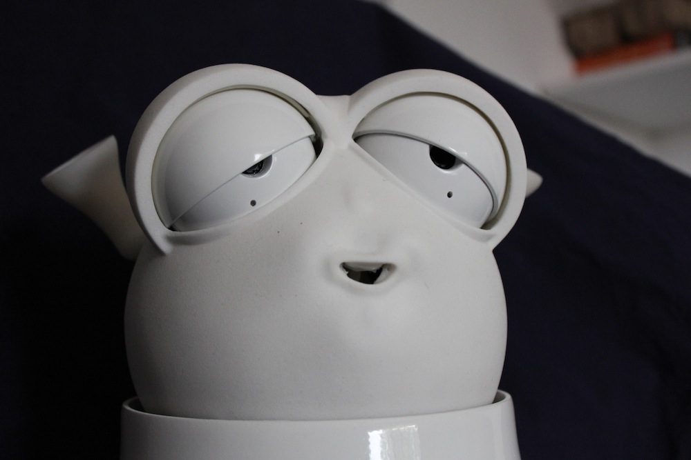 In the robotics world, silicone rubber can be either used for disturbing evil, such as the slug-like Elphoid P1 humanoid cellphone, or for bug-eyed good, like French firm Robopec's endearing REETI. The desktop companion is both a PC, a webcam and a telepresence 'bot, capable of streaming live video from his webcam eyes, responding to touch thanks to various embedded sensors, and making facial expressions.Video demo after the cut