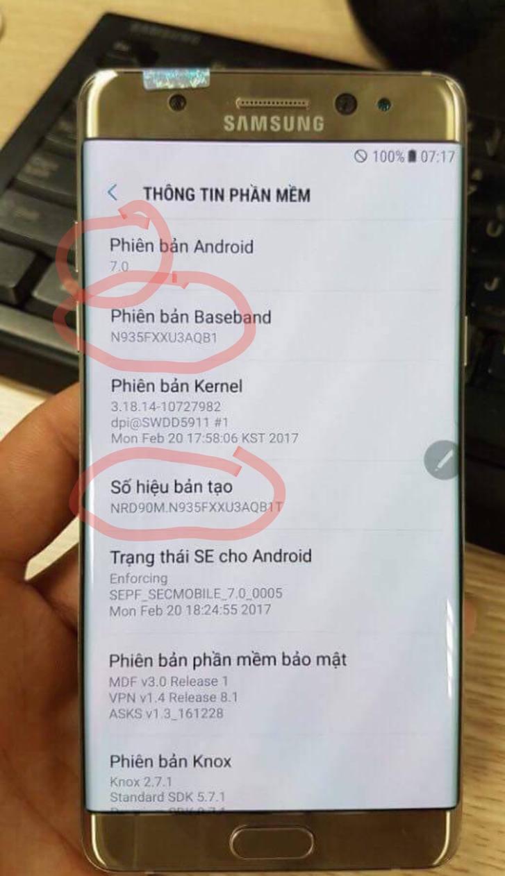 The photos shown here are of a Galaxy Note 7 that turned up in Vietnam, although it's not clear if the device was sold legitimately. The date seen on the phone's lock screen indicates that the pictures were taken Friday, April 7th, and the specs state that it's running a build of Android 7.0 from February 2017 — well after Samsung issued a global recall of the Note 7.