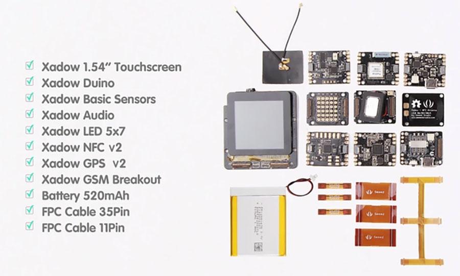 There are three different kits including the RePhoen Core module GSM+BLE, RePhone Core Module 3G, and RePhone Kit Create. The RePhone Kit Create has a RePhone core Module GSM+BLE, audio module, 1.54-inch touchscreen, 520 mAh battery, and two pre-cut Kraft Papers to create the enclosure for the phone.