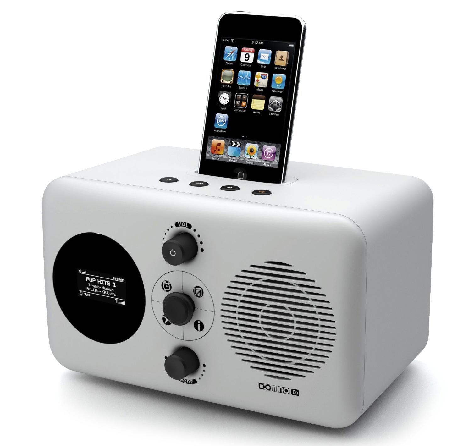 DOMINO D3 is capable of receiving a full range of digital radio standards including DAB, DAB+ and internet radio – as well as conventional FM radio with RDS. DOMINO will also wirelessly stream digital music files from any 'connected' PC or Apple Mac. Additionally, DOMINO D3 includes an integrated iPod dock and is one of only a small number of digital radios that is certified by Apple for use with both the iPod and iPhone.