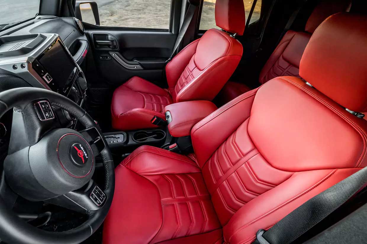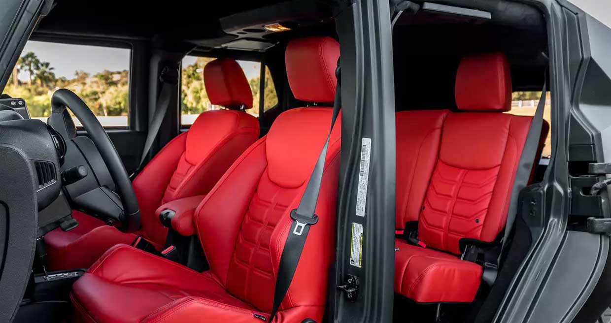 The Tank X is fancy on the inside with the model in the images wearing red leather that is hand stitched and packing a 7.9-inch infotainment system. It even has a HUD so you can keep eyes on the road. As you probably assumed with a Hellcat engine and all the other tech, the Tank X isn't cheap.