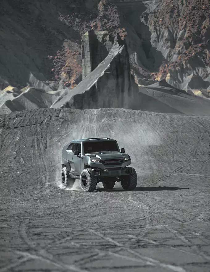 Rezvani says this thing is an off-road supercar and it certainly sounds like it. The same V8 engine is offered in the Tank Military Edition, but in that application, an engine is an option. The Tank X lacks the ballistic armor meaning it should be lighter and better on the trials than the Military Edition. Tank X buyers can get the FLIR thermal/night vision system that comes standard on the Military edition, but it will add on another $5,500.