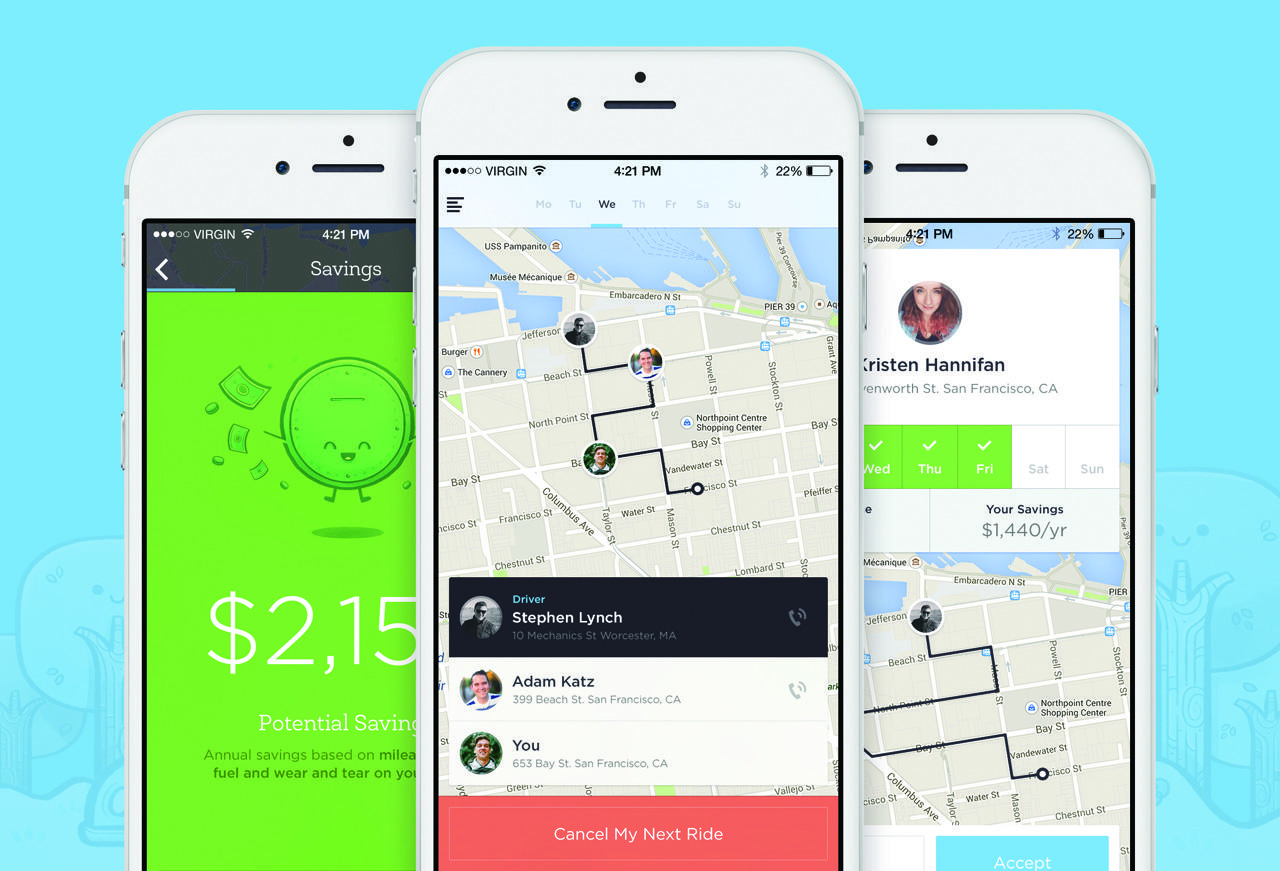 Using a smart algorithm, riders and drivers are matched along your commute, so in theory, you can just sign up and await your ride. When you sign up for the service you can choose to be a driver or a passenger. As drivers are on their way to work too, Ride also arranges back up rides in case someone needs to work late, so you won't risk being stranded.