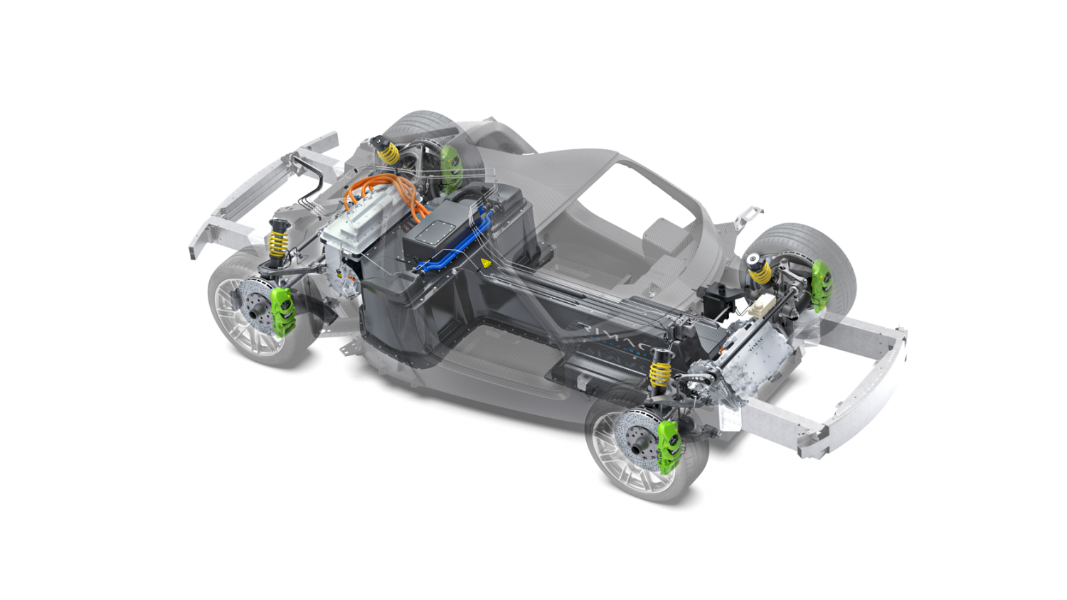 There are four electric motors, one for each wheel, and collectively good for 1,914 horsepower. Torque vectoring – where power to each wheel can be individually adjusted, depending on traction and performance requirements – is standard. Like the 120 kWh battery cells, the electric motors are of Rimac's own design.
