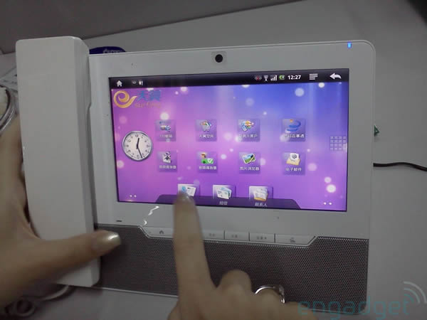 We're still not entirely sure of the specifications – we're guessing it uses a roughly 7-inch touchscreen – but it also seems that Rockchip might want to do a little more work on their Android build. Several of the hands-on photos show the phone rotated into portrait orientation; not a problem with an Android smartphone, but less ergonomic when you're having to flip your desk phone around.