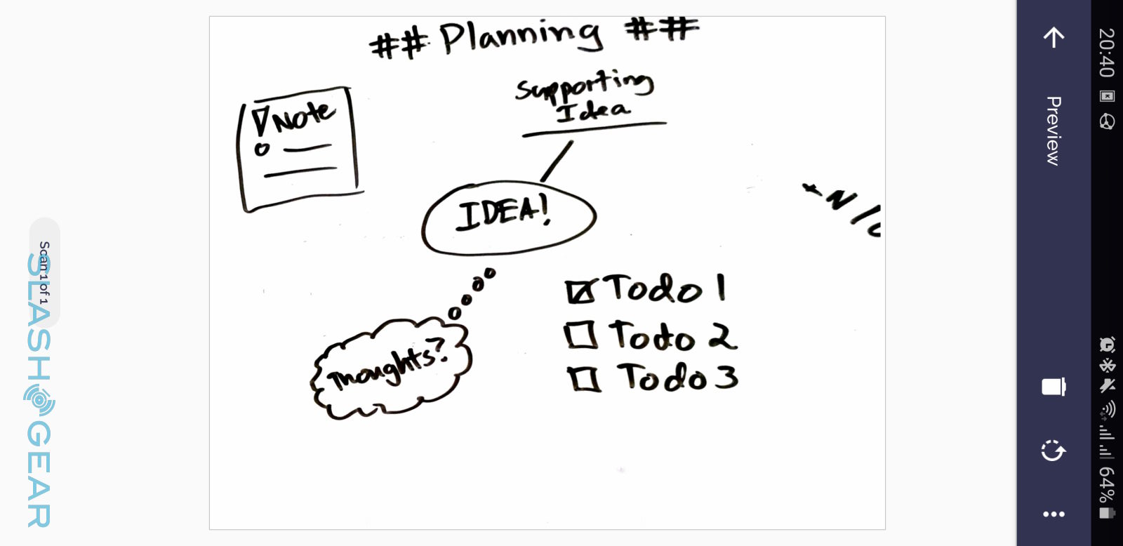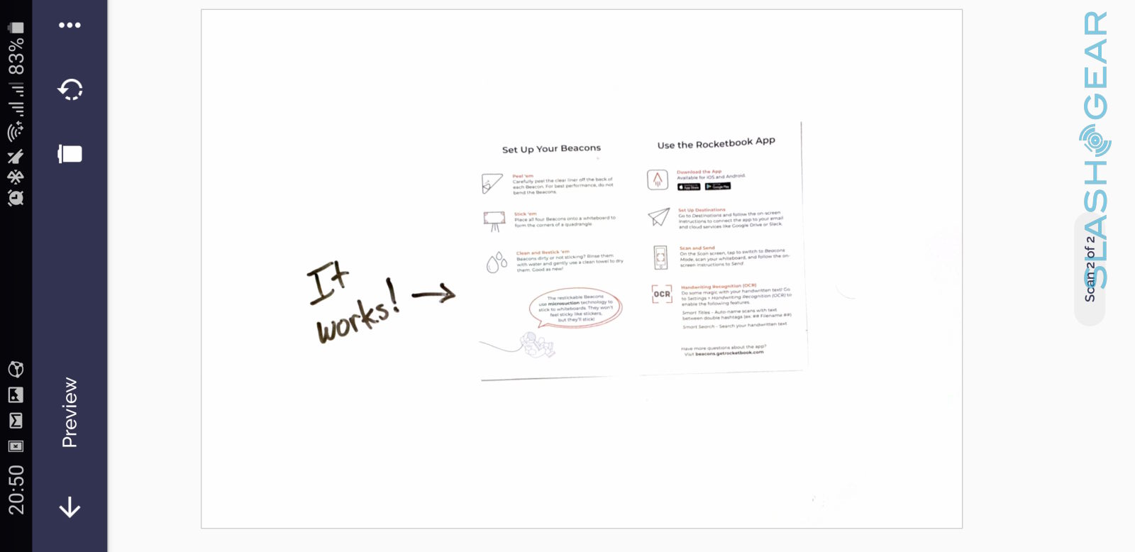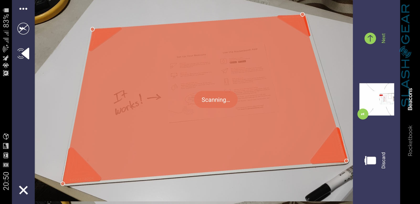 Better than your phone camera and almost like scanning apps, Rocketbook's app is able to straighten out or correct photos taken with the Beacons in place. This means you don't have to fuss over perfect alignment or positioning of the camera. Just snap and let Rocketbook do its magic to not only "flatten" the perspective properly but also clean up the image as if you actually wrote or drew directly on your phone.