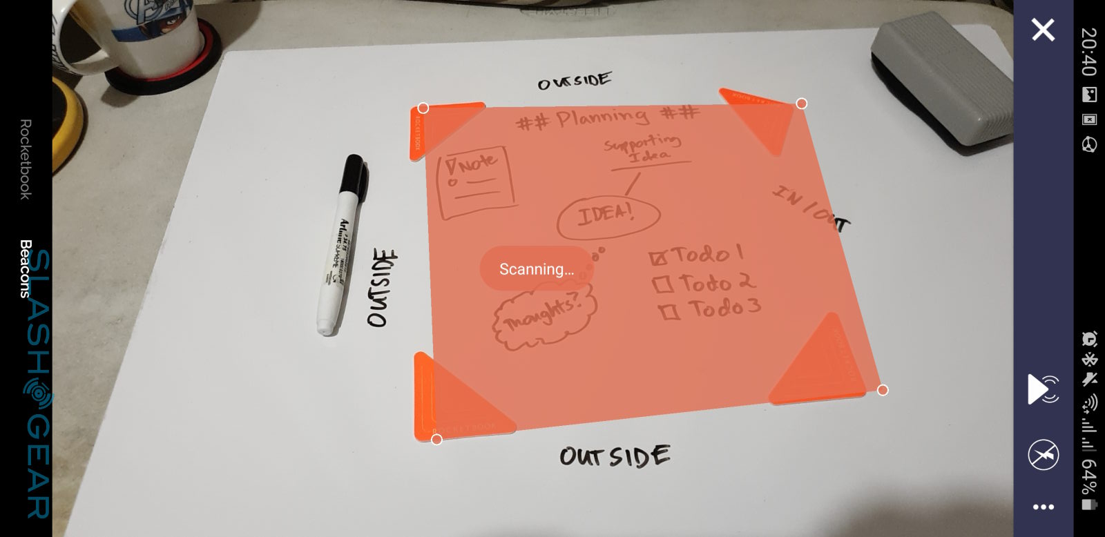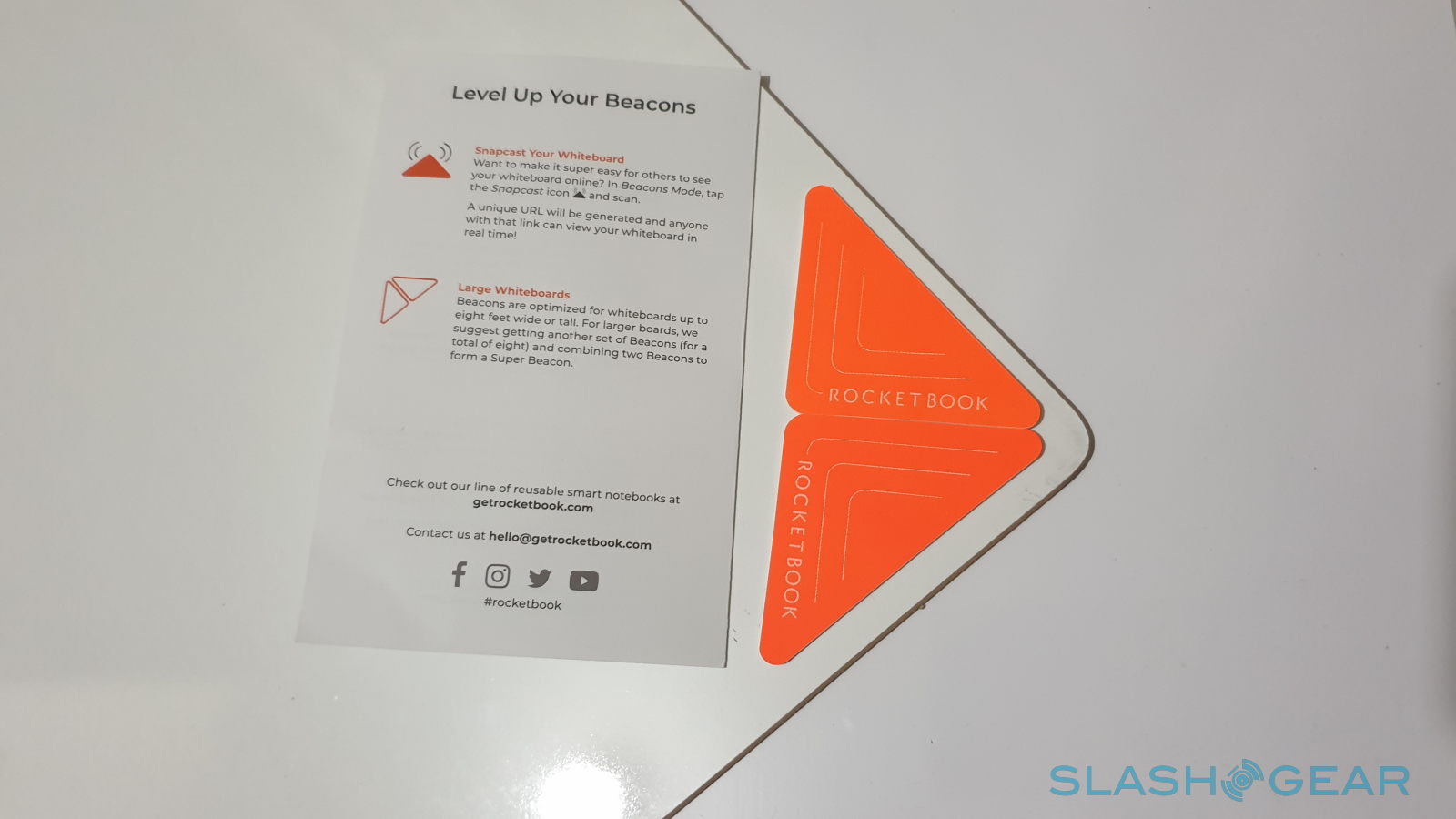 The Beacons break that size barrier by utilizing the most reusable writing canvas ever, dry erase boards a.k.a. whiteboards. Giving whiteboards a modern and digital upgrade isn't a new concept but Rocketbook gives it a more economical twist. No need to throw your existing and favorite whiteboards away, all you need are four orange triangles.