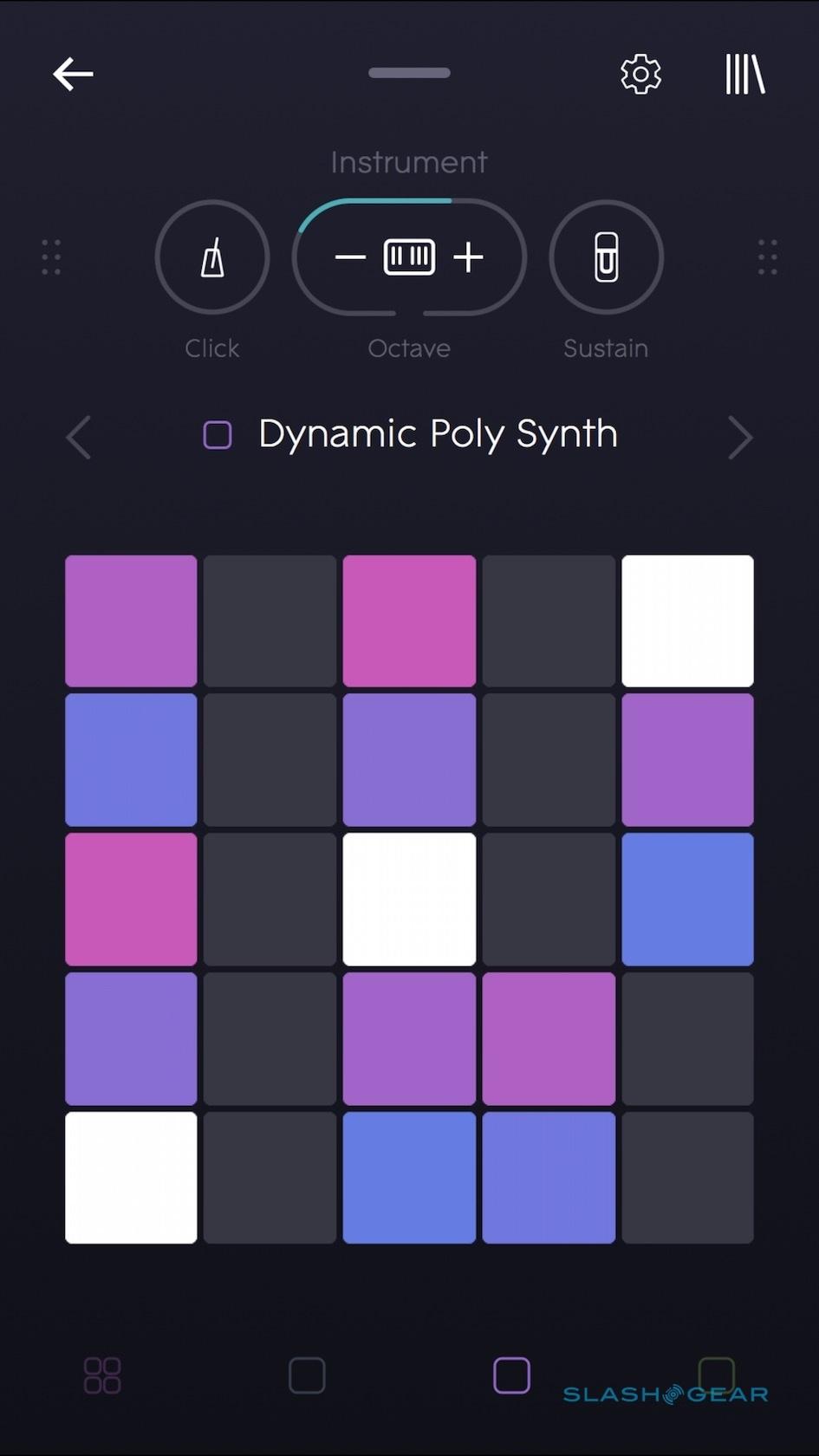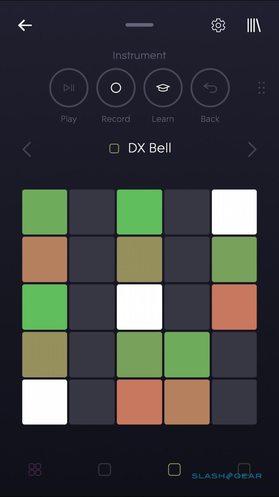 If you're playing live, you'll spend most of your time in Instrument view. Switching to Song view gives you twelve slots for different loops, per instrument (either Multi or Solo) and you can switch between them either from the NOISE app or the buttons on the Live BLOCK. Instruments auto-populate the loop slots with presets, and you can trigger them by tapping either in NOISE or on the Lightpad (the latter shows four banks at a time). As you might expect, they loop every four bars until you tap the next preset, which takes over after the current one finishes.