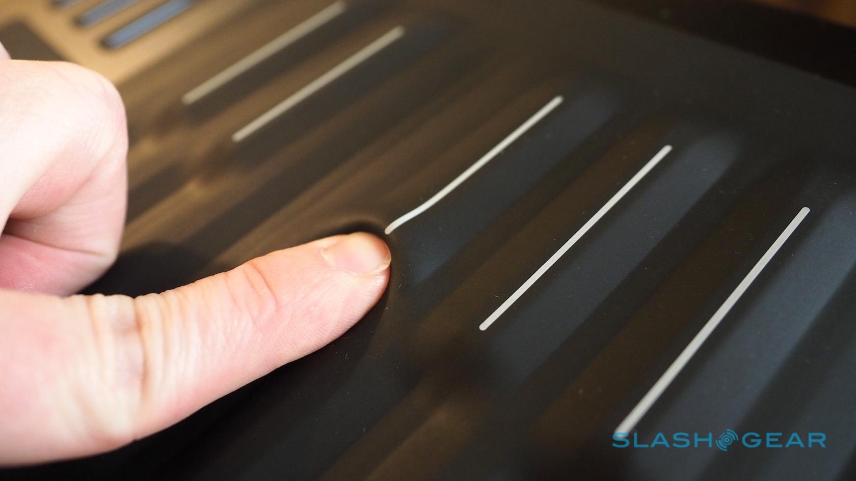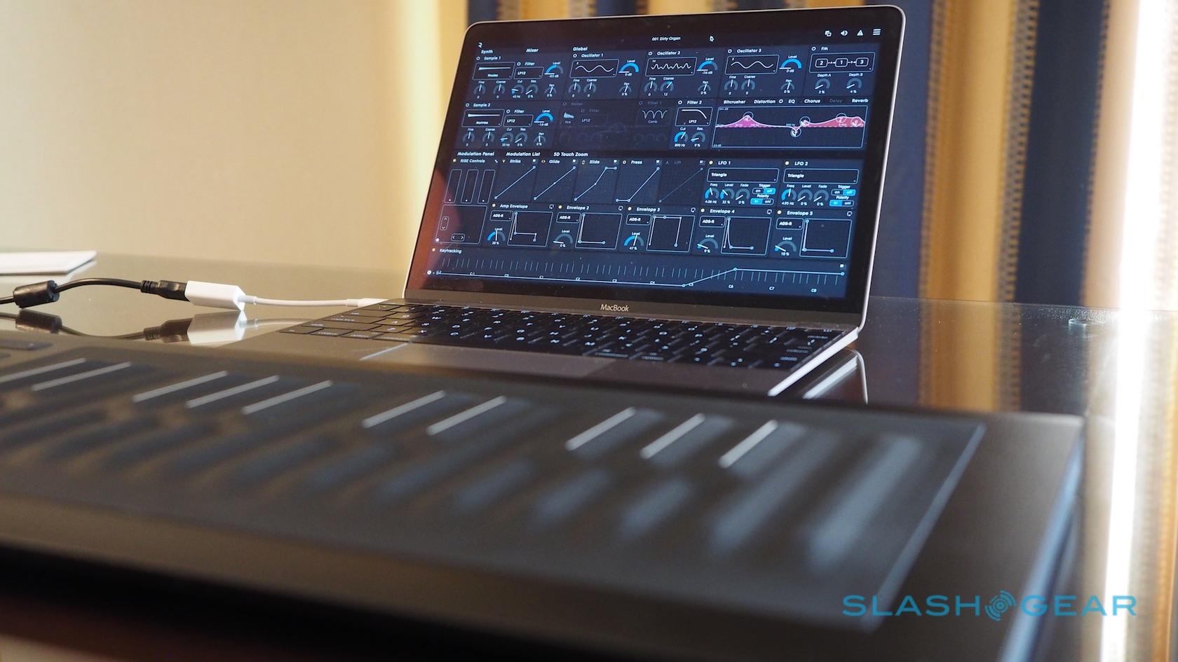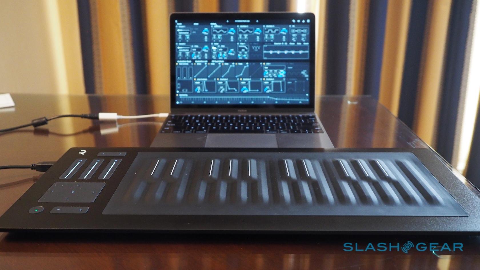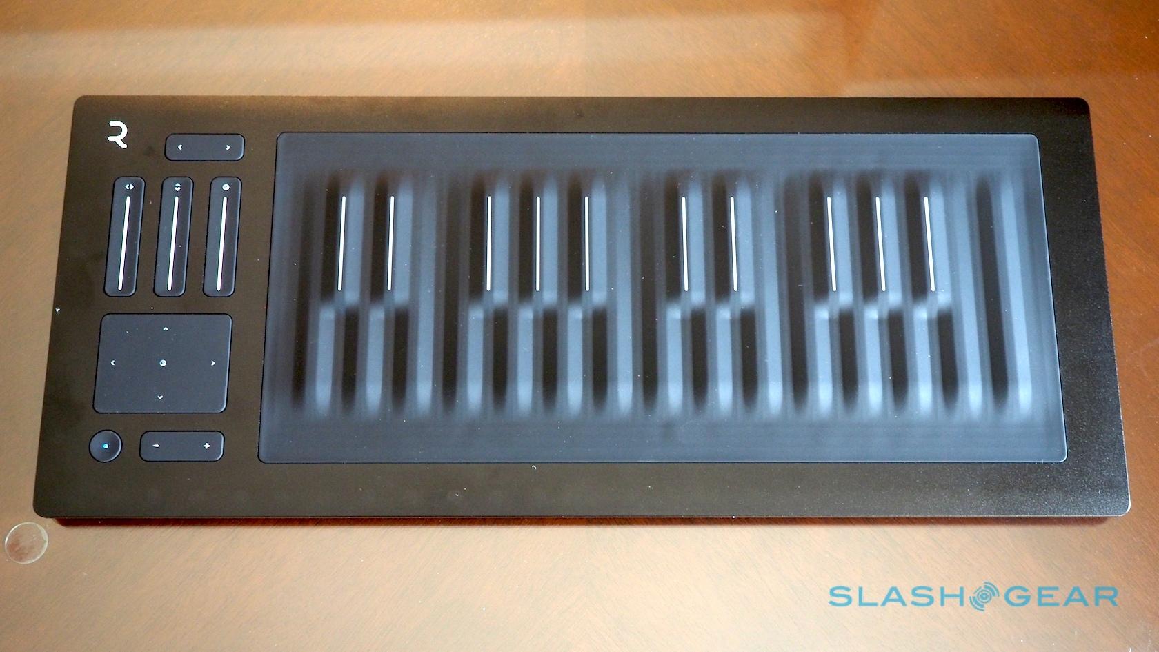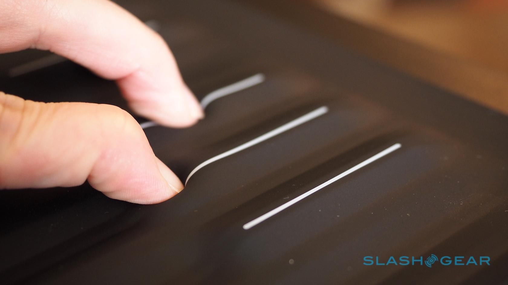 That surface is laced with pressure sensors which effectively turn the whole thing into a blend of different instruments: keyboard, theremin, strings, and more. While you can tap a key individually, you can also drag your finger across, apply more or less pressure to modulate the sound, and even take into account the vigor with which you lift your fingertip.