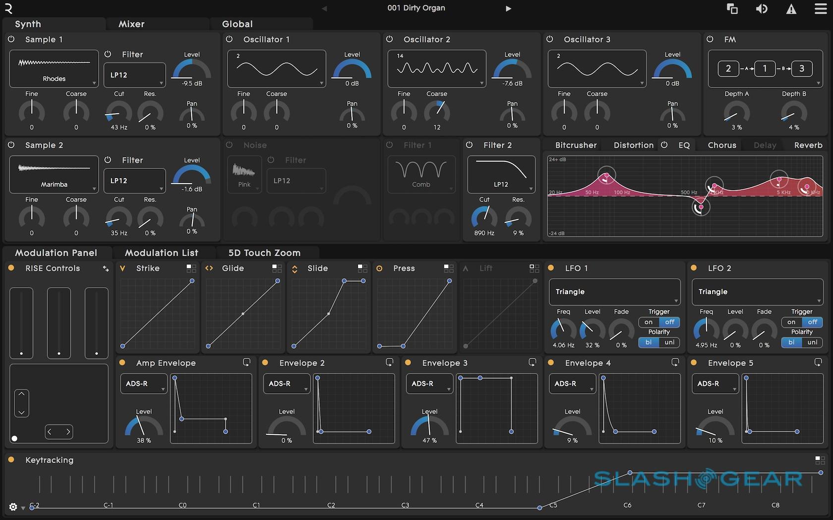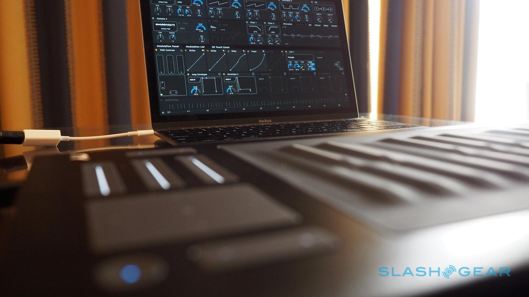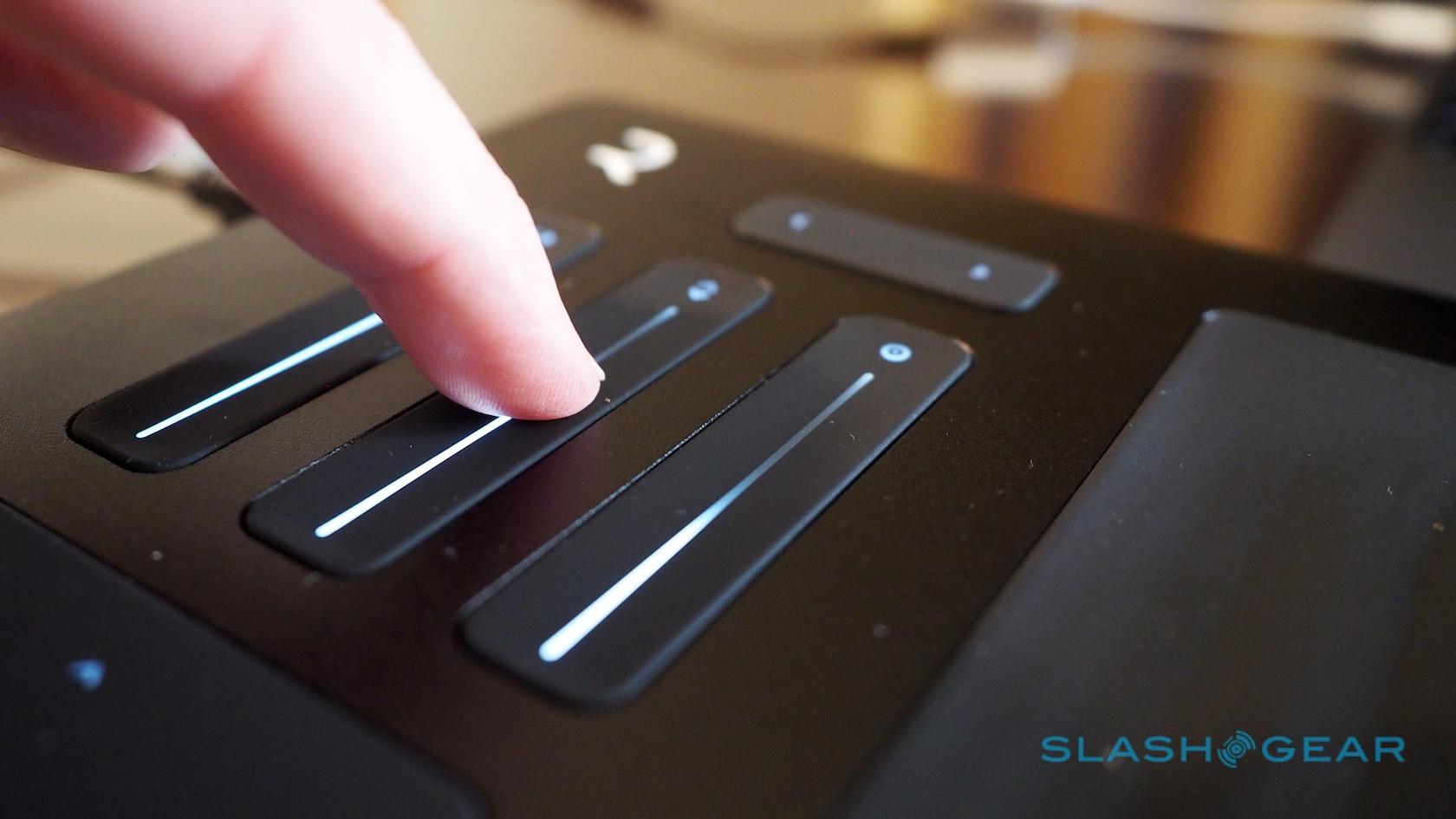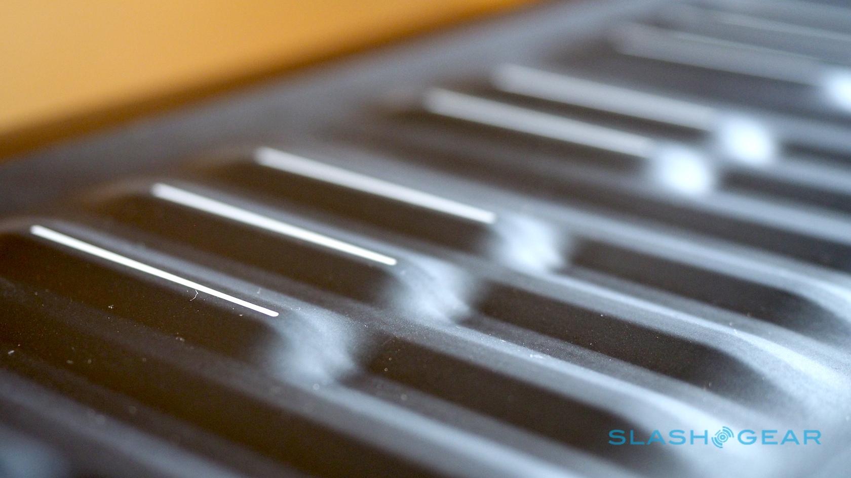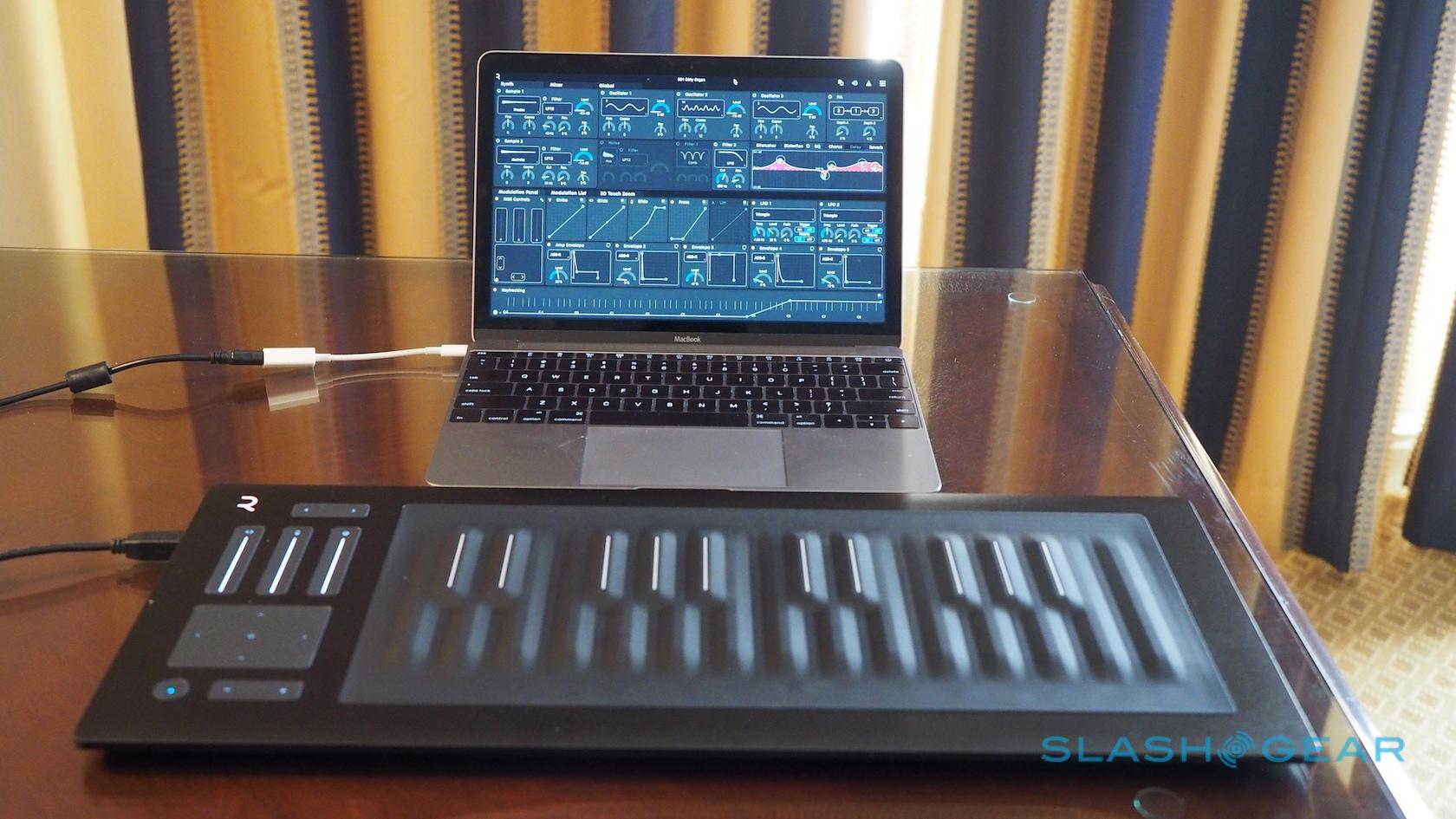 That surface is laced with pressure sensors which effectively turn the whole thing into a blend of different instruments: keyboard, theremin, strings, and more. While you can tap a key individually, you can also drag your finger across, apply more or less pressure to modulate the sound, and even take into account the vigor with which you lift your fingertip.