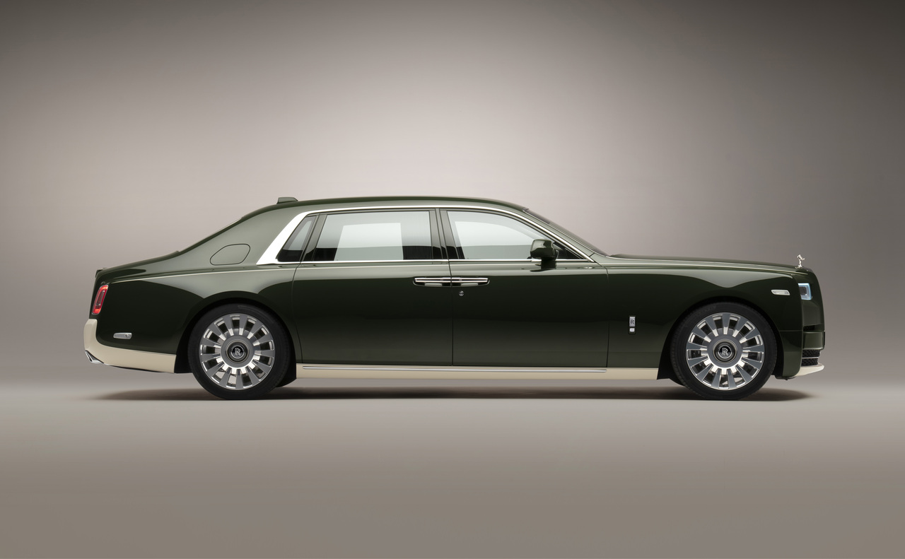 Exquisitely handcrafted by a combined team of craftspeople and bespoke specialists from Rolls-Royce at Goodwood and Hermès in Paris, Phantom Oribe draws inspiration from Mr. Maezawa's collection of vintage Japanese Oribe ceramics, hence the two-tone MZ Oribe Green and cream exterior paint. Additionally, the green paint will also grace Mr. Maezawa's private jet to match his car. Nice.