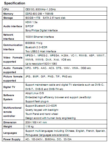 It's not just MIDs that Routon make: the company also has an HD Internet Media Player on offer, the Routon H3. Based on Intel's CE3100 processor, with integrated MPEG2, VC-1/WM9 and H.264 hardware decoding, the H3 can output 1080p via HDMI together with stream media via gigabit ethernet or WiFi. There's also a Bluetooth remote control with QWERTY keyboard and trackpad.