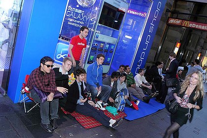 Samsung has hijacked Apple's iPhone 4S launch day hype, with a pop-up store in Sydney, Australia offering $2 Galaxy S II handsets just meters away from the official Apple Store. Queues longer than those outside Apple have built up for the limited number of super-cheap smartphones, the Muswellbrook Chronicle reports, with Samsung offering patient shoppers just 10 devices each day.