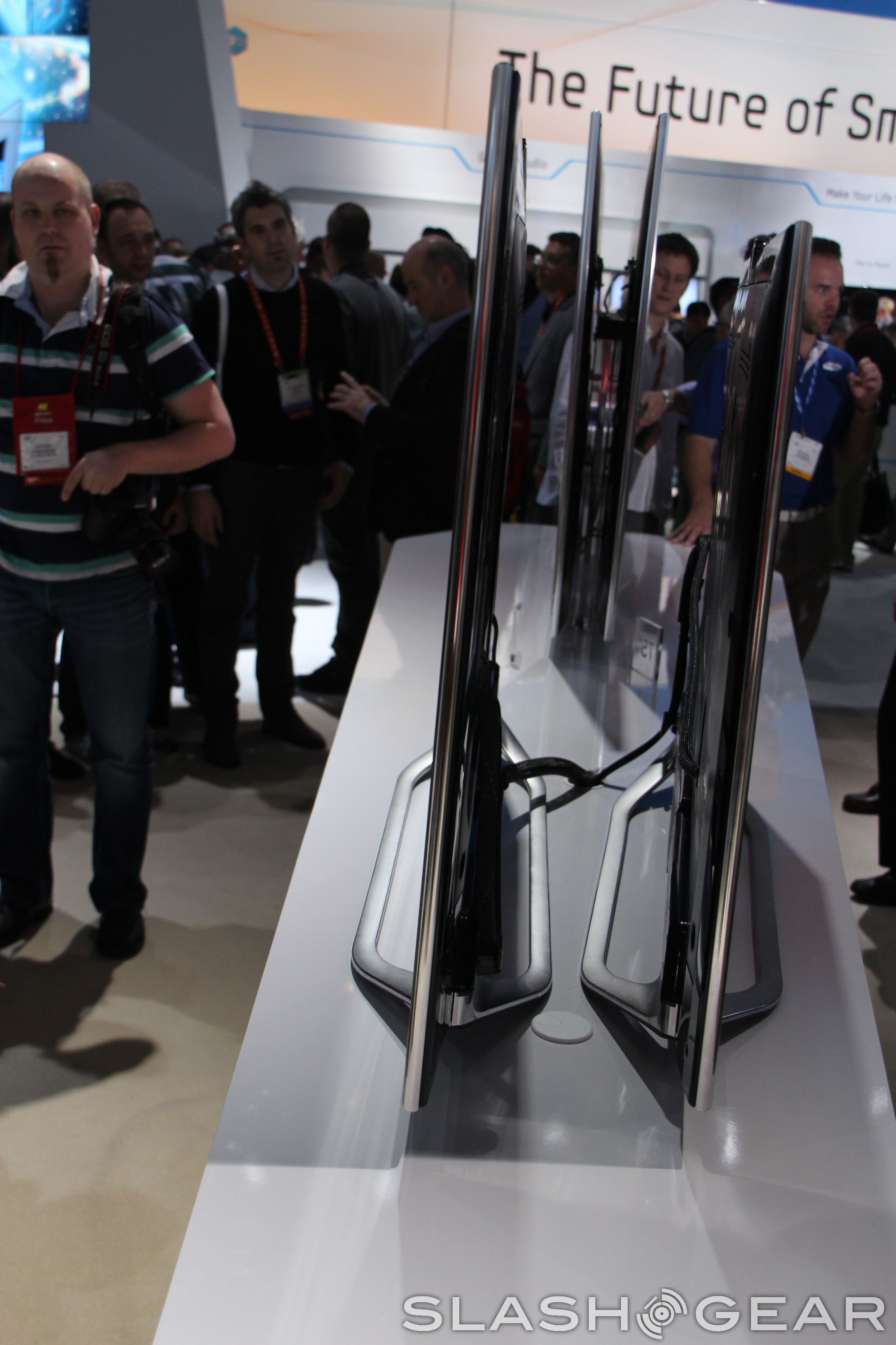 Unfortunately the floor display didn't go into Samsung's new Smart TV interface or applications, so we couldn't test out the gesture control. Samsung plans to make its Smart TV line available in a range of sizes in 2012. Pricing and precise availability details are not available.