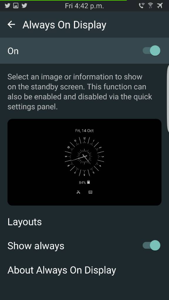 Galaxy S7 and S7 Edge owners have begun noticing a software update rolling out that brings some of the Note 7's more impressive features to their device. This includes the always-on display setting, along with customization options like showing a photo, choosing an analog or digital clock to be shown, and notifications.
