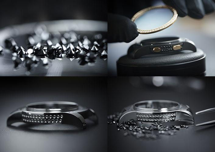 It is impossible to mistake this Gear S2 edition as simple fancy gadget. The 41 mm case of the smartwatch alone is made of that premium looking and much coveted rose gold with 56 white diamonds, paired with a black DLC-coated stainless steel set with 71 black diamonds. The strap is also no ordinary strap, bearing de GRISOGONO's signature galuchat skin.