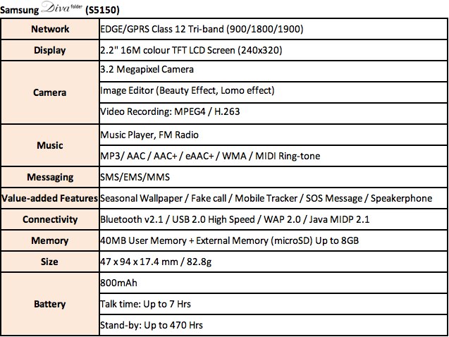 The Samsung Diva S7070 and Diva Folder S5150 are set to arrive in January 2010, with the UK, France, Germany and other parts of Europe getting them first, followed by Southeastern Asia and China afterward. No word on pricing.