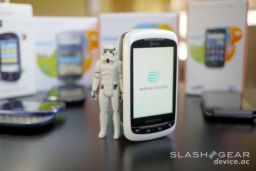 Android and Samsung have such an all-encompassing strategy going on as of late that every tier of the smartphone market is saturated with a combination of the two, from the top all the way to the bottom – a good example of how to do the bottom RIGHT is in the device you see here, the Samsung DoubleTime. What we're going to compare this device to are a few other similarly-stacked devices on AT&T, but you'll understand before the end of this that AT&T's selection of Android devices relies so heavily on top-tier smartphones that the Samsung DoubleTime may well have a market to do well in. Imagine that!
