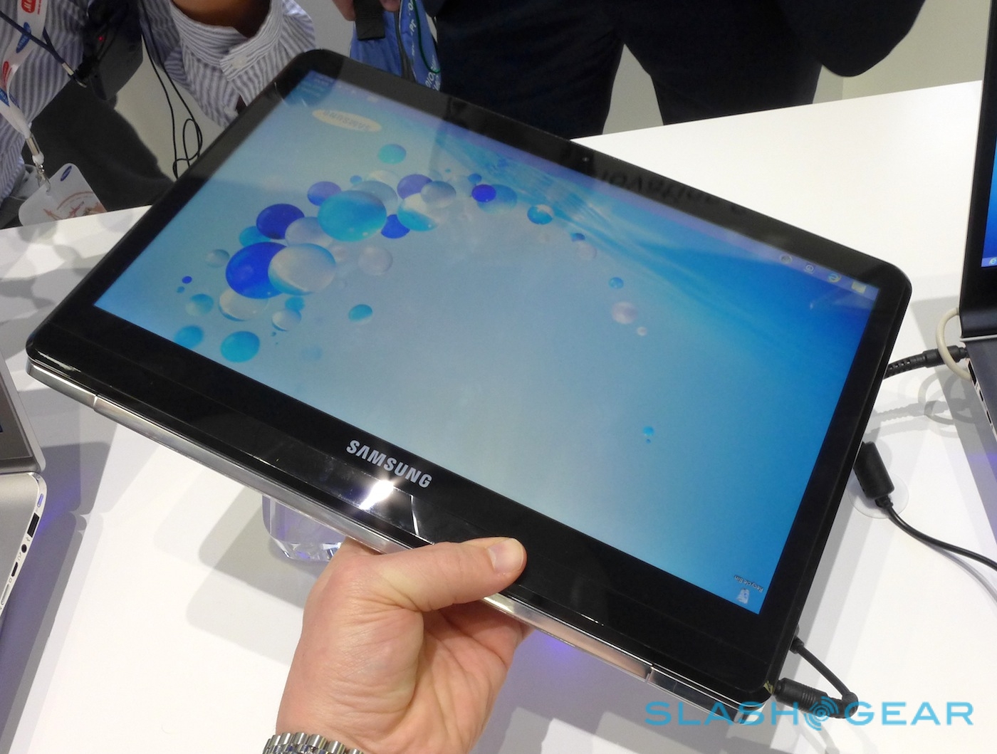 Samsung's Windows 8 line-up at IFA wasn't limited to just the ATIV range; the company also had some interesting concepts to show, of which the most usable was a Dual-Display Notebook. Resembling one of Samsung's slick Windows ultrabooks from face-on, close the notebook's lid and there was a second display to be found, turning the machine into a slate-format tablet.