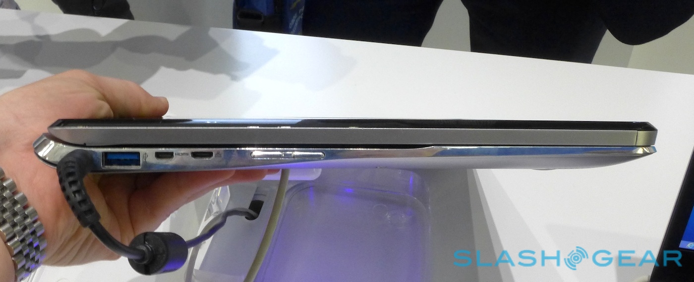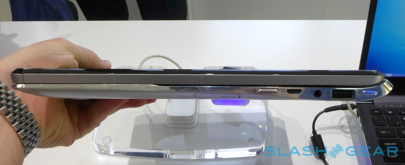 The downside to Sony's strategy is weight. The base section of the notebook is as slim as a regular Samsung ultrabook, but the lid is considerably thicker than the norm; it has to be, to fit back-to-back displays. Although it didn't tip back under its own heft, or prove too much for the hinge mechanism to keep the screen stable, you did notice it when lifting the concept notebook up.