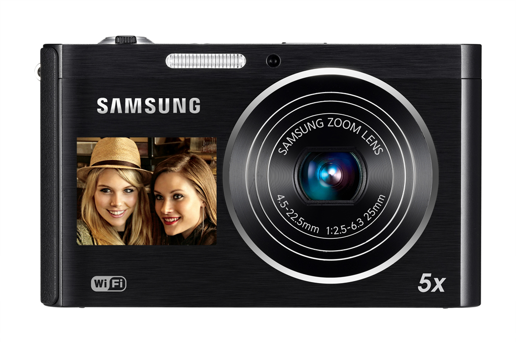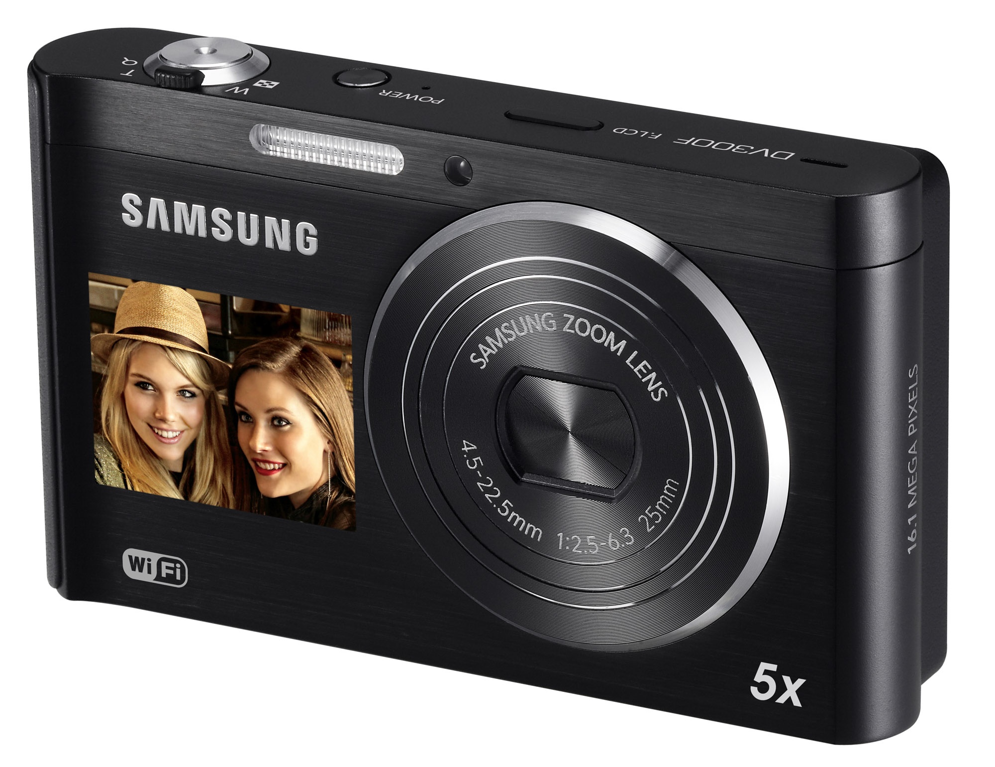 Samsung has launched the 2View/DualView DV300F, the company's latest dual-display digital camera toting a 16.4-megapixel CCD and WiFi for easier self-portraits. Pairing a 3-inch 460k main display with a 1.5-inch 61k front LCD, the DV300F grabs stills and up to 720p 30fps video clips with mono sound. Using Samsung's free Remote Viewfinder app for Android and iOS, owners can remotely frame shots, take photos, add geotagging from the phone's GPS and view video from the camera.