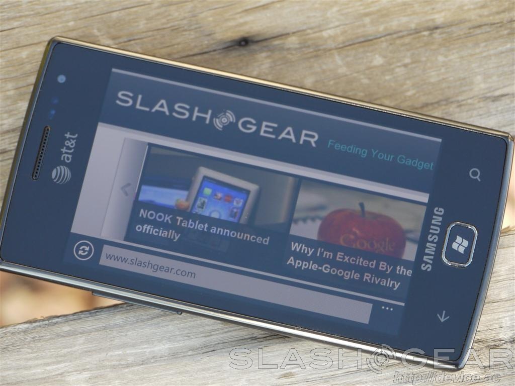 While the display isn't as large as some we've seen, or the Focus S launched at the same time. We do have 3.7" of Super AMOLED beauty and the 800 x 480 resolution looks just fine with the bright and crisp Samsung display. We have no complaints with the hardware although we wouldn't mind a slightly bigger screen, not to mention maybe a louder speaker around back. Then again, you can't really complain for $49 can you?