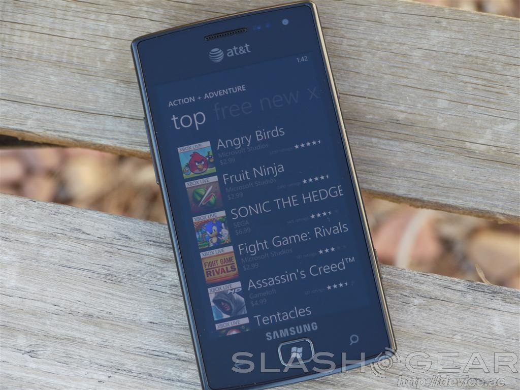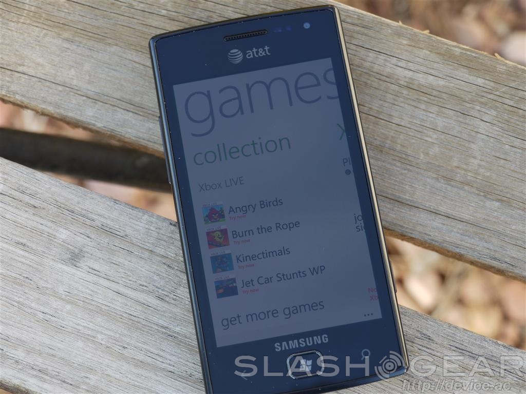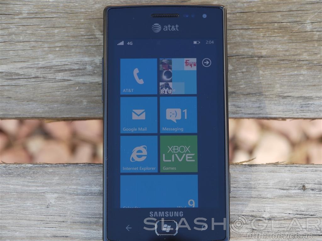 Like we mentioned above the hardware isn't really anything special or new, but then neither is the software with Windows Phone 7.5 Mango. We've seen it before but it does come in a decent package that is at least somewhat impressive when considering the price it'll be — just $49 with a new 2-year contract. We have a 3.7" Super AMOLED display (no plus), a 1.4 GHz single-core Qualcomm processor, 512MB of RAM, along with a 5 megapixel camera with LED flash around back and a 1.3 front for video chat. Sadly we only have 8GB of internal storage and no micro-SD slot, 6GB is all that is available to the user and will probably pose a few problems for the media heavy user.