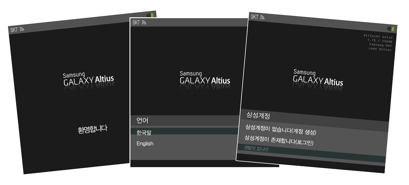 This series of screen-grabs includes the name GALAXY Altius, one that we've heard in a set of rumors very recently attached to what was thought to be the Galaxy S IV – another device rumored to be revealed soon. This device has SKT and SKTelecom on several shots, this indicating that it will be carried with a data plan on that particular South Korean mobile service. Though the software here does appear to have an Android-type look to it, it could just as easily be a basic Java-based interface not unlike what we're seeing with today's reveal of the REX series from Samsung.