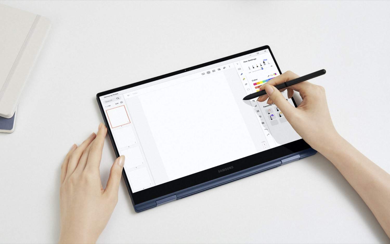 Samsung's convertible version of the notebook, the Galaxy Book Pro 360 is. little heavier – 2.29 pounds for the 13.3-inch, and 3.06 pounds for the 15.6-inch – but arguably a lot more usable. The display resolution and technology is the same, but there's a new S Pen design – thicker than the old version, for a more comfortable grip – with the stylus bundled in the box, too.