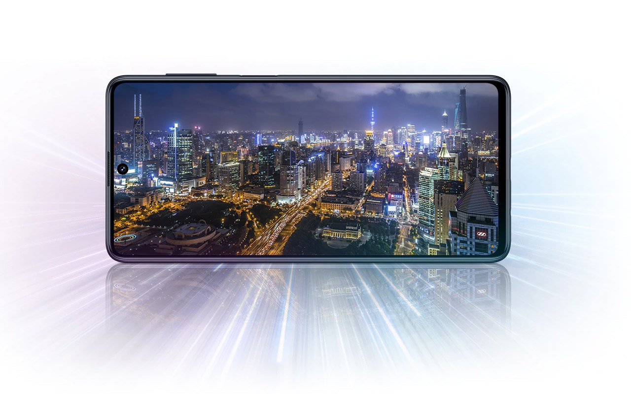 This device has a 6.7-inch Super AMOLED display with a single centered punch-hole for its front-facing camera. The front-facing camera on this machine is a 32MP piece of hardware made for selfies. You'll not see the dual-camera setup we've assumed on devices like the Motorola One 5G or the OnePlus Nord here, though they do all have very similar displays... if you're going only by the most basic dimensions.