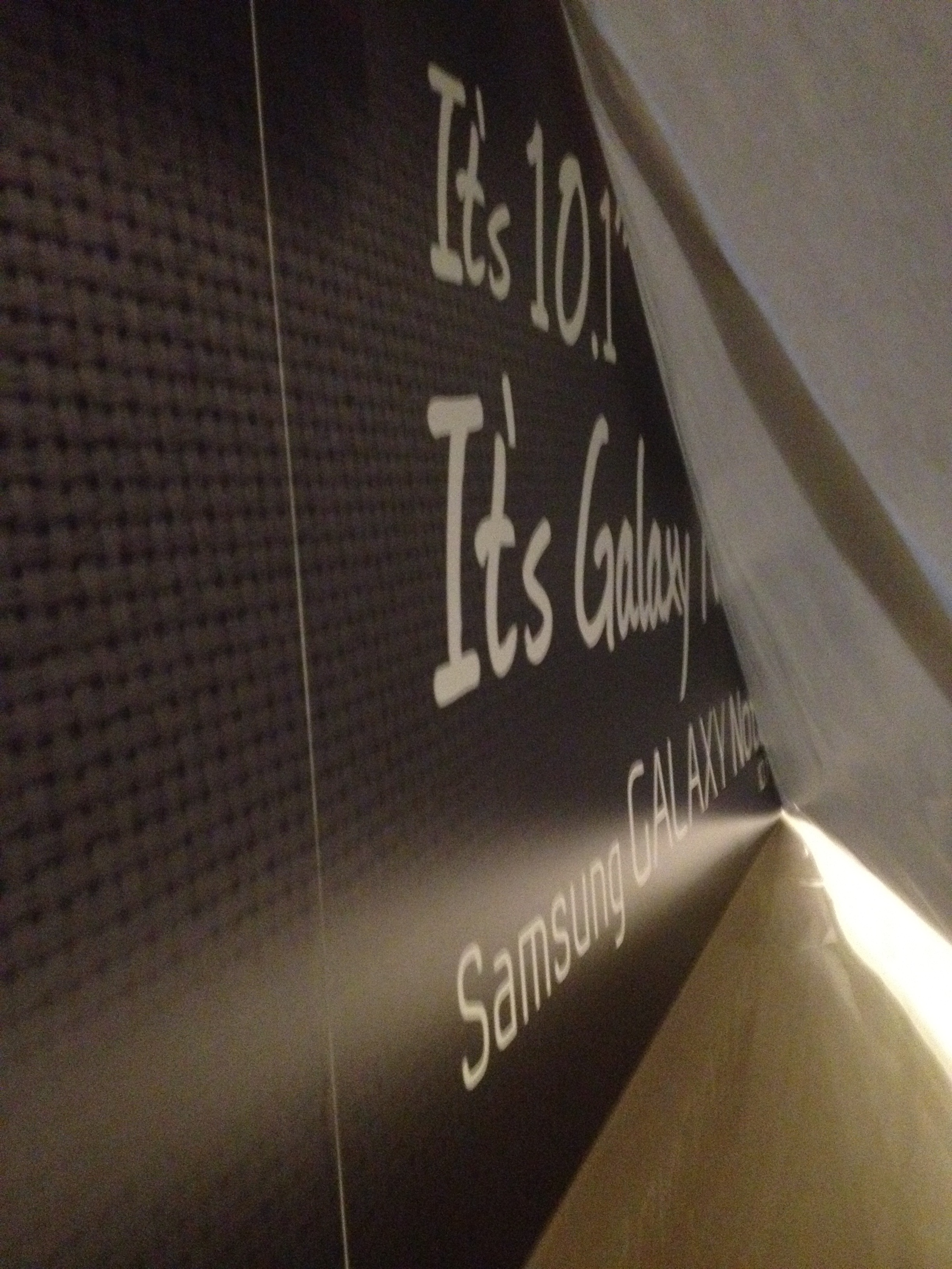 Well well well: this would appear to be some pretty solid evidence that Samsung's latest stylus kick is getting even more plus-sized come Monday. Swedish blogger Anders Frick spotted a couple of large-scale advertisements in and around the Fira de Barcelona, where the first pre-show events for Mobile World Congress are set to begin in just a few hours. While he was clearly doing a little surreptitious snooping, what he caught with his camera is pretty clearly the Samsung Galaxy Note 10.1, a full-sized tablet version of the original Galaxy Note. The device itself should get a proper unveiling sometime on Monday.