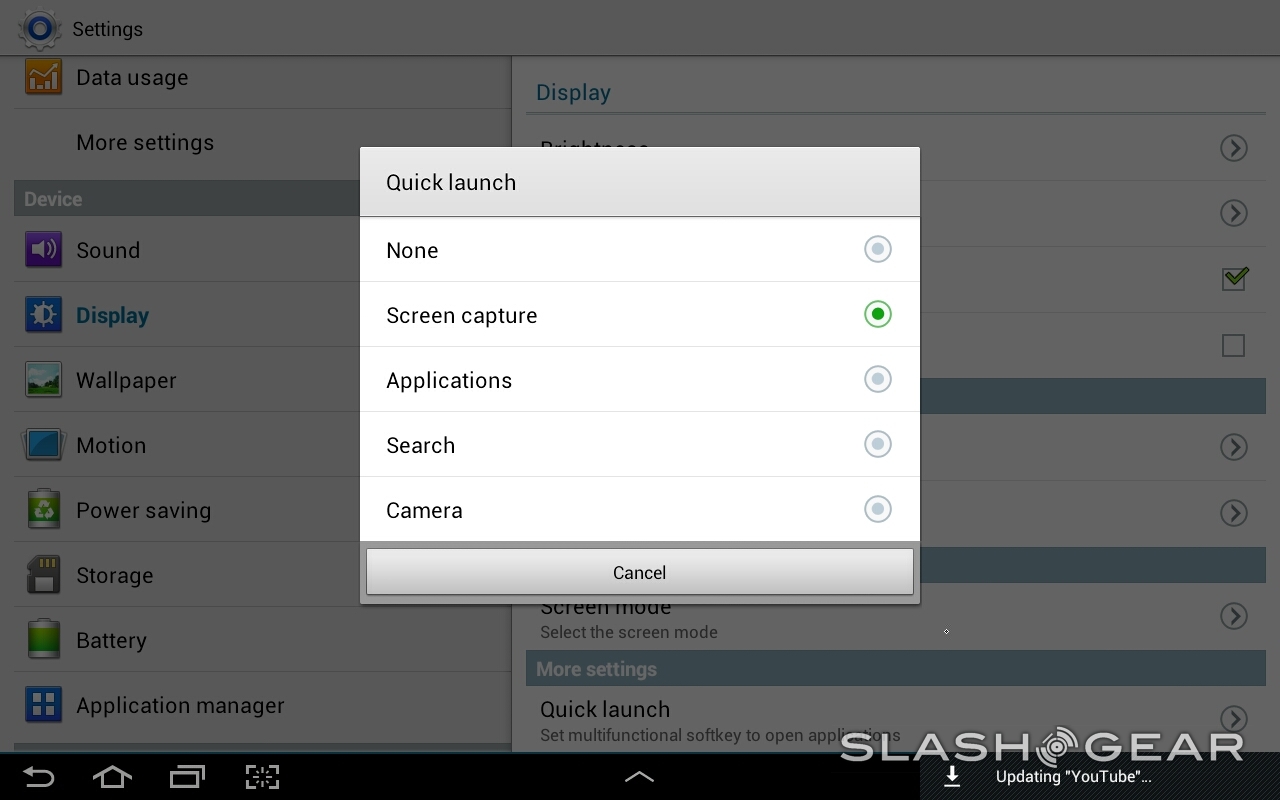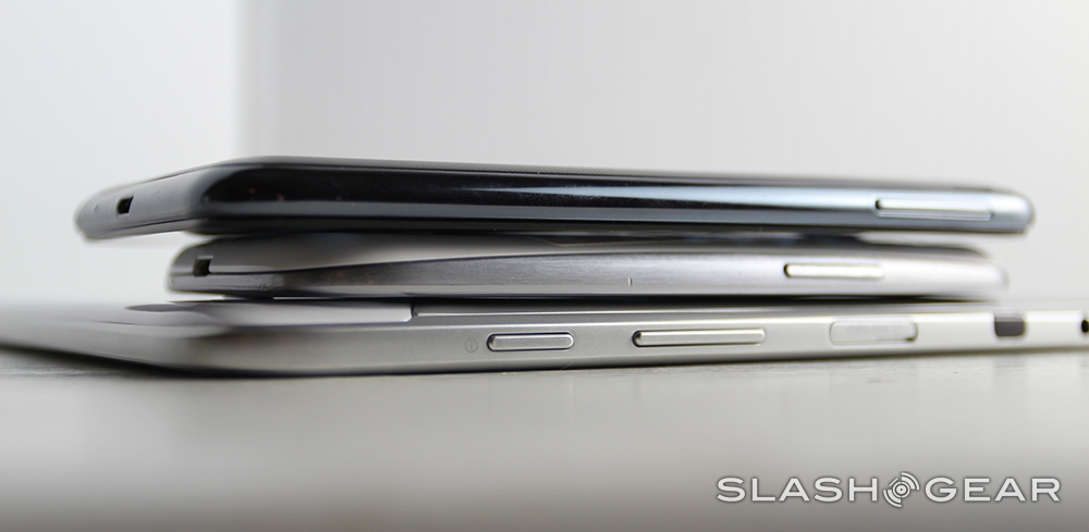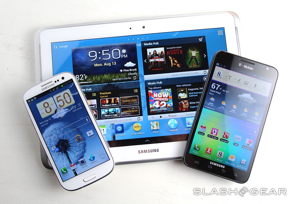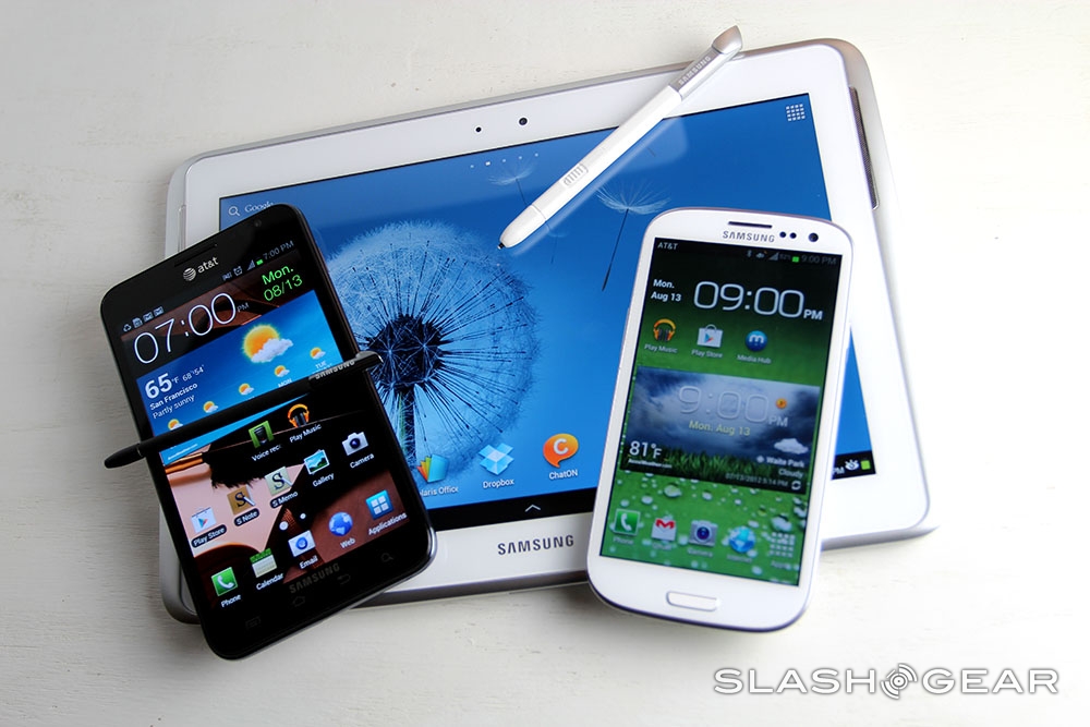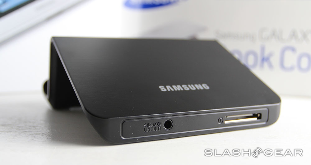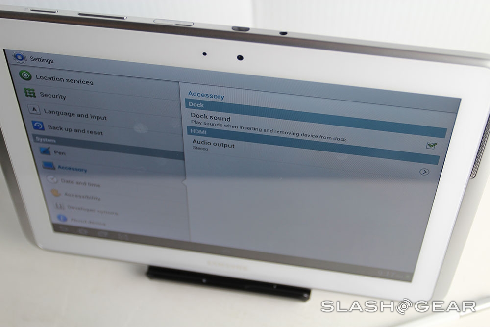 The tablet is relatively light, essentially as thin as it counterparts in the Galaxy Note and the Galaxy S III lineups, and feels really nice to hold. The glass up front sits a bit lower than the silver rim around the entire device, and the uniqueness of the tablet is clear – this is no iPad. We wont be comparing this device to the most popular tablet on the planet right here and now though, check the SlashGear main news feed for more device war action in the near future.