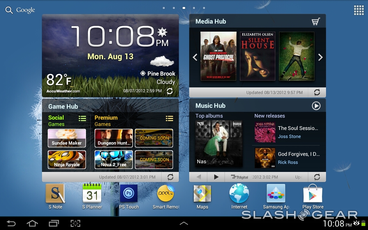 This device takes Samsung's idea of a tablet-centric Android with Ice Cream Sandwich and TouchWiz and takes it all to a new level. While a lot of what you're seeing here will look rather familiar if you've used one of the three following devices, you'll find that here you've got an experience that's wholly unique: Galaxy S III, Galaxy Note, Galaxy Tab 10.1 – the original.