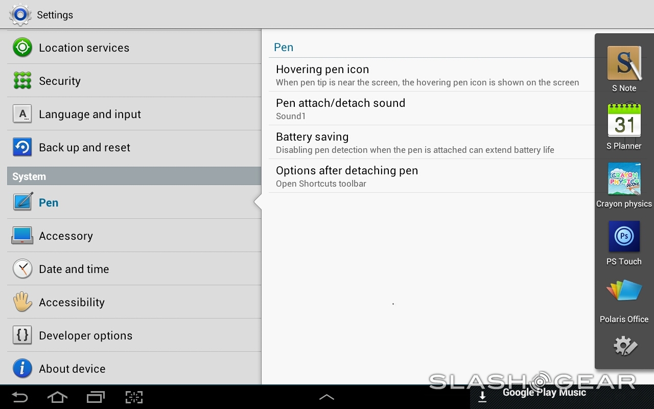 You've got several S-Pen-specific apps on the device right out of the box including S-Note and Photoshop Touch. Of course the apps you'll see in the hands-on video above also work, somewhat, without the pen tool, but that'd be just silly. With the S-Pen you've got a note-taker that never runs out of ink or needs to be sharpened, but just incase, Samsung has included several replacement tips.