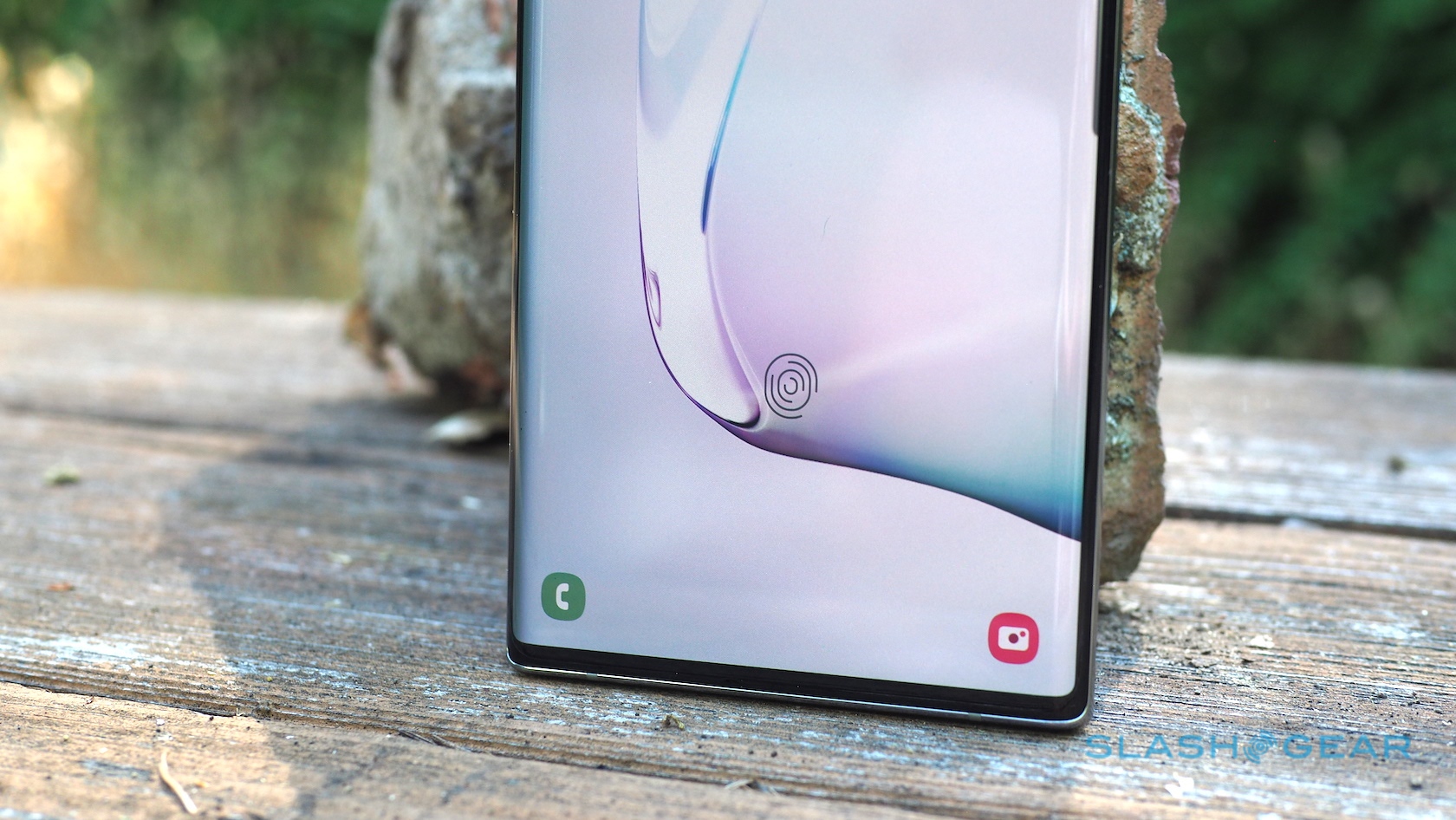 Both use an Infinity O Dynamic AMOLED panel, HDR10+ certified, with an in-display ultrasonic fingerprint sensor. No more fumbling on the back to scan your finger. Later in the year there'll be a Note 10 plus 5G, initially a Verizon exclusive.