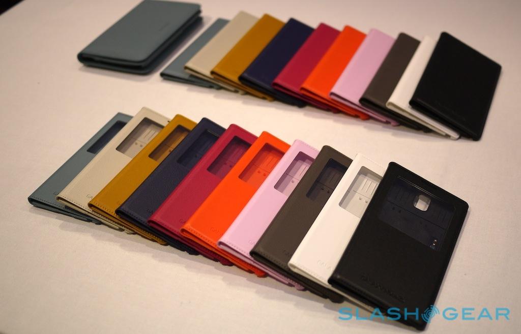 There's also a new windowed case, with a large opening on the front to access the touchscreen and see notifications and even run apps and browse through the calendar. Samsung will offer that in multiple colors, as well as various interchangeable back panels, and a number of non-window cases.