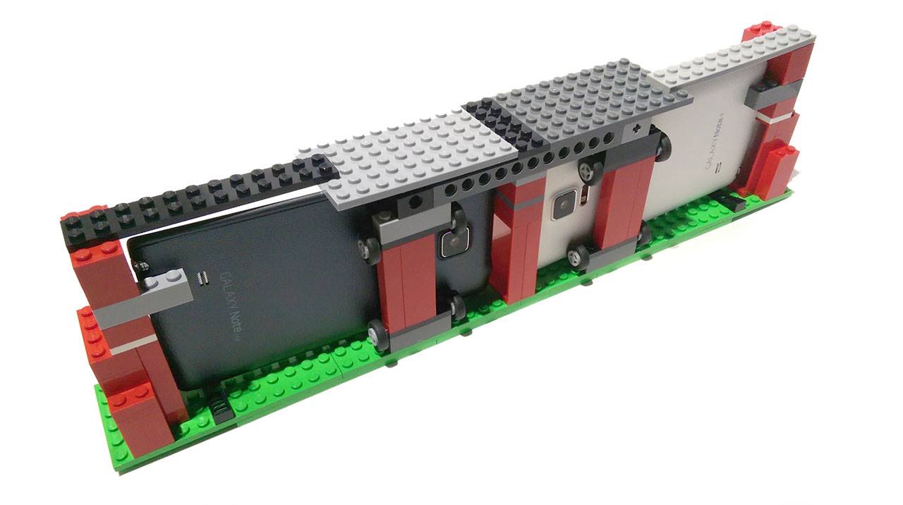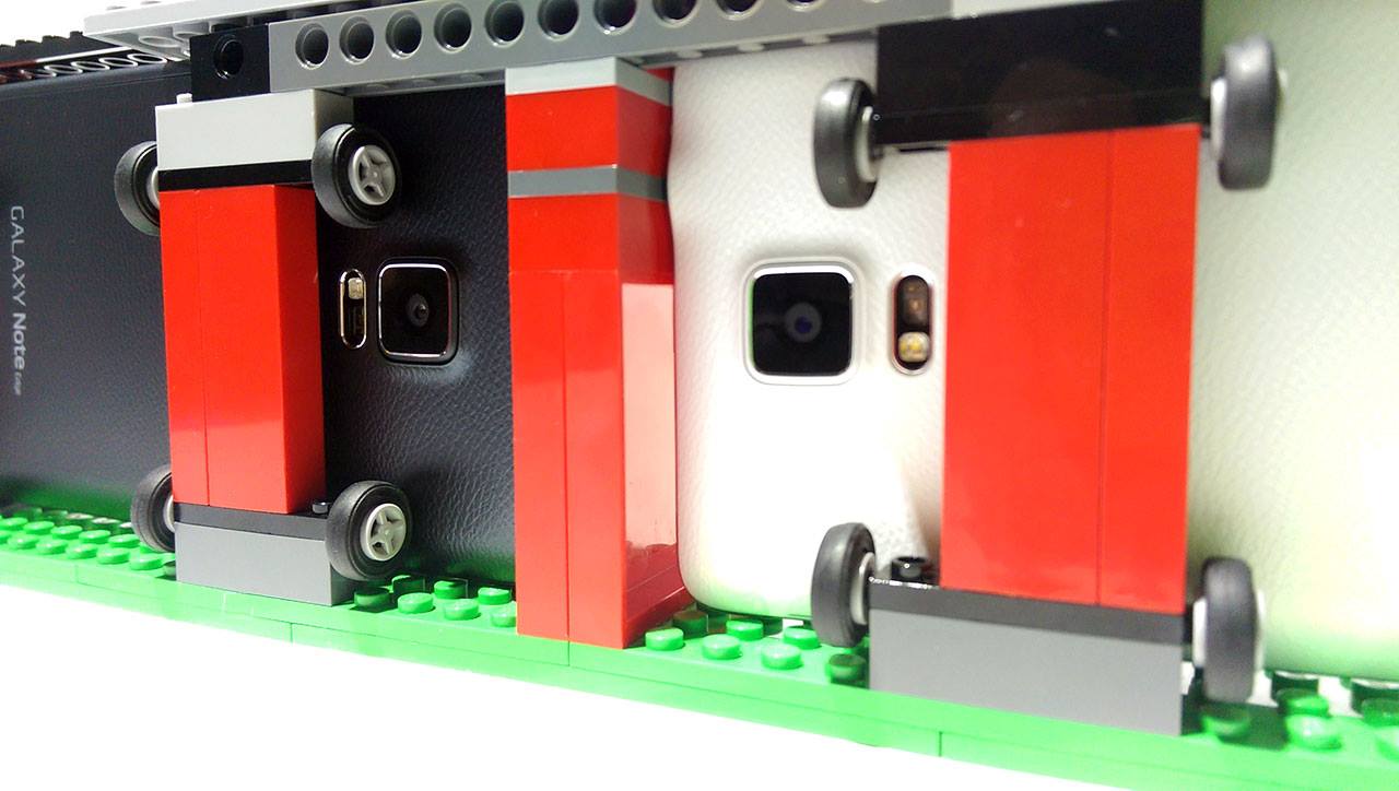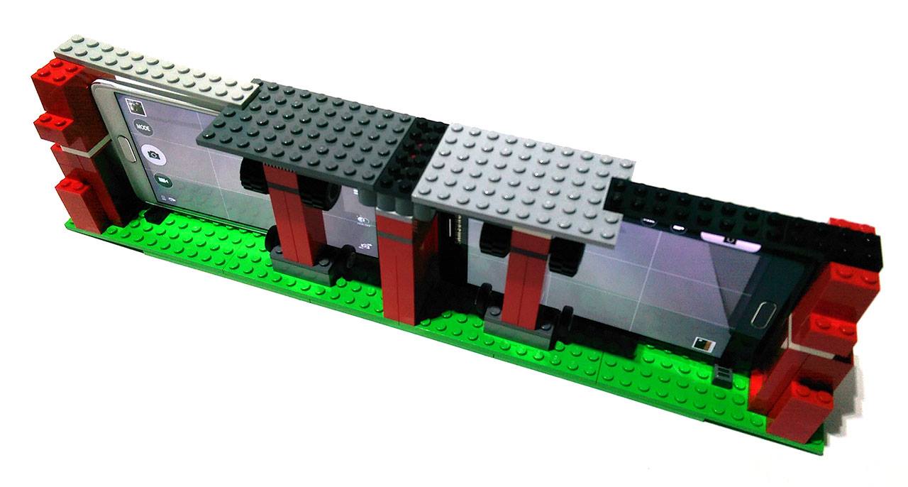 The above shots were taken and filmed with a rig that allowed both devices to be recording side-by-side. This rig is made entirely of LEGO blocks and was constructed over the course of an afternoon as a DIY experiment.